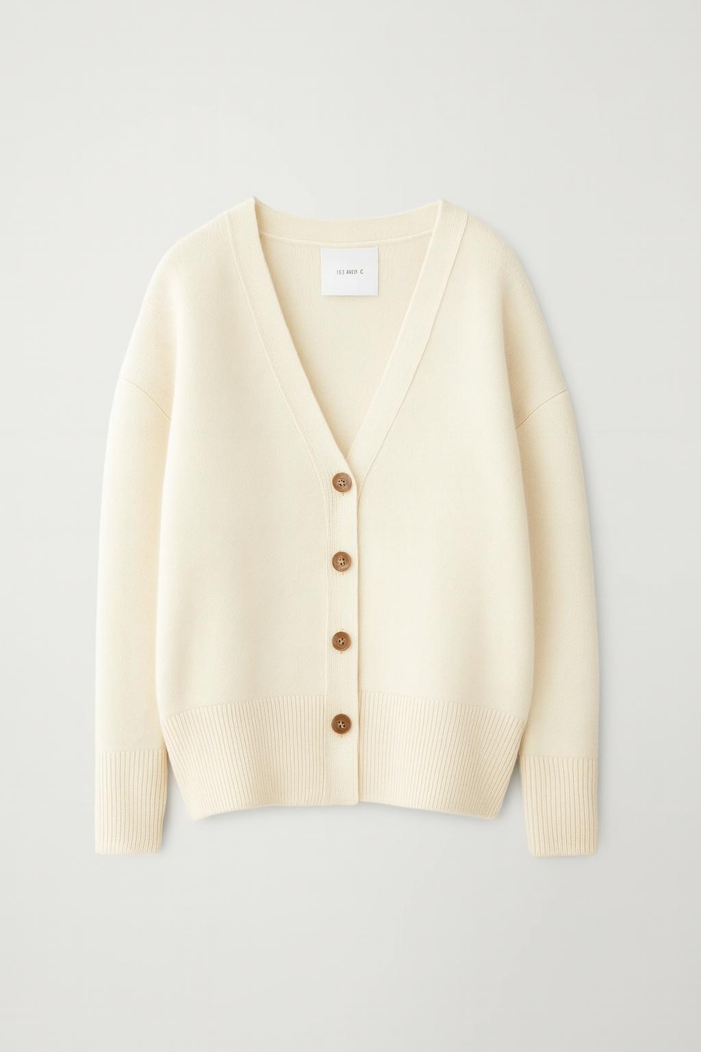 A new everyday companion, the Amery cardigan is crafted in double face cashmere for sturdy structure. The relaxed fit, elongated silhouette features a deep v-neck, a front button fastening, dropped shoulders, full-length sleeves and a ribbed hem and trims.