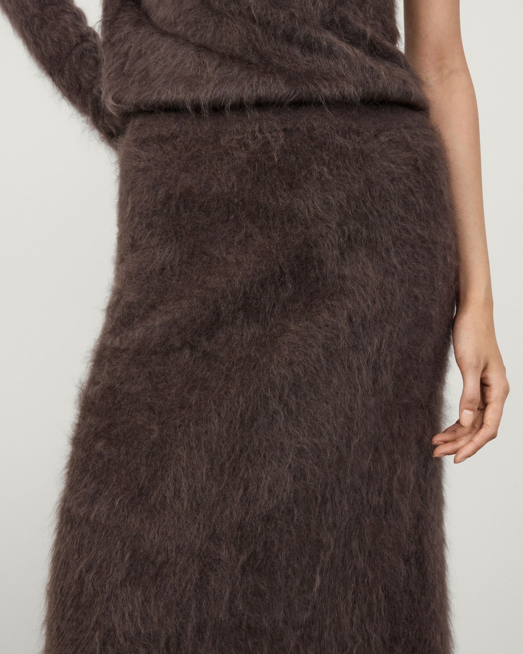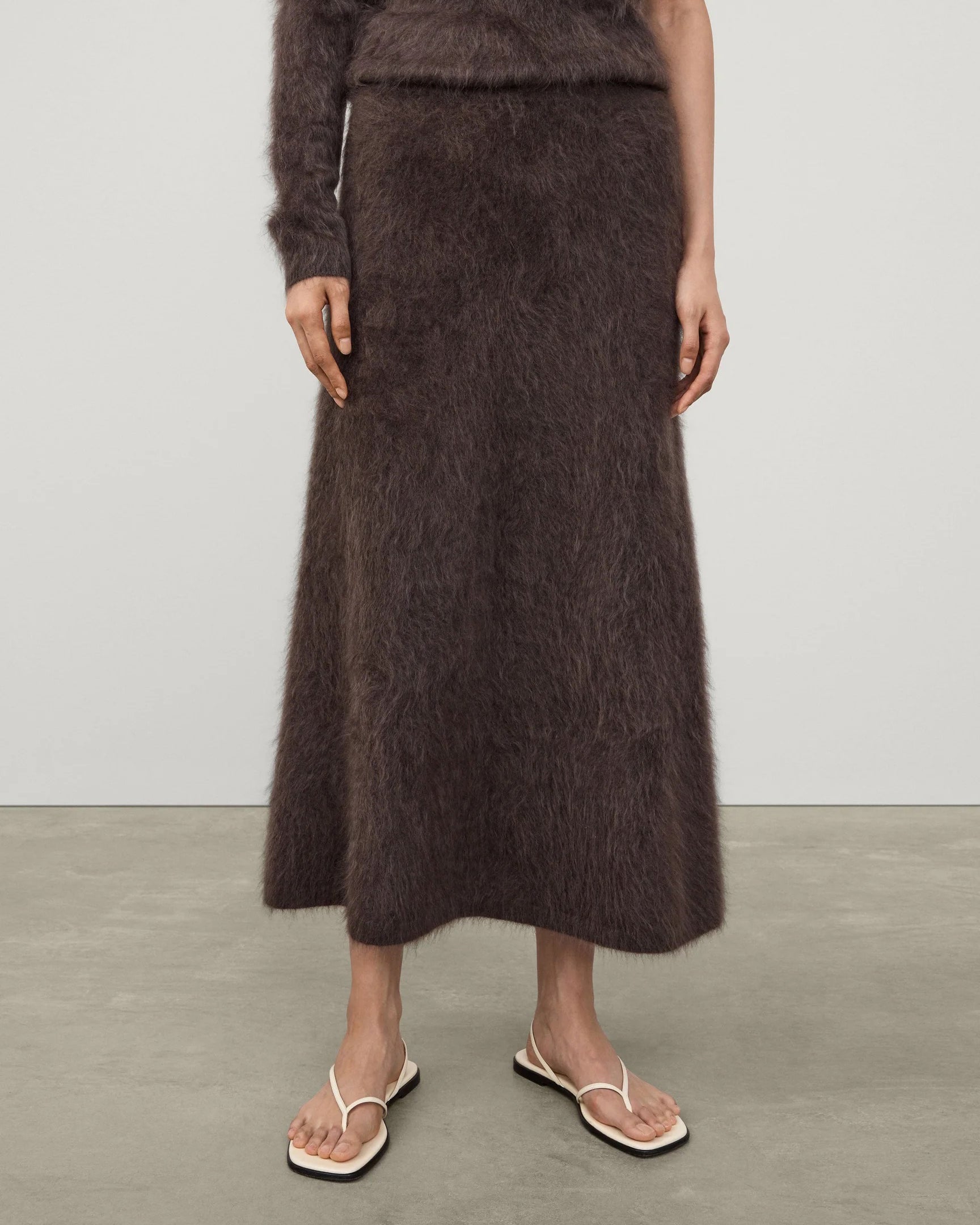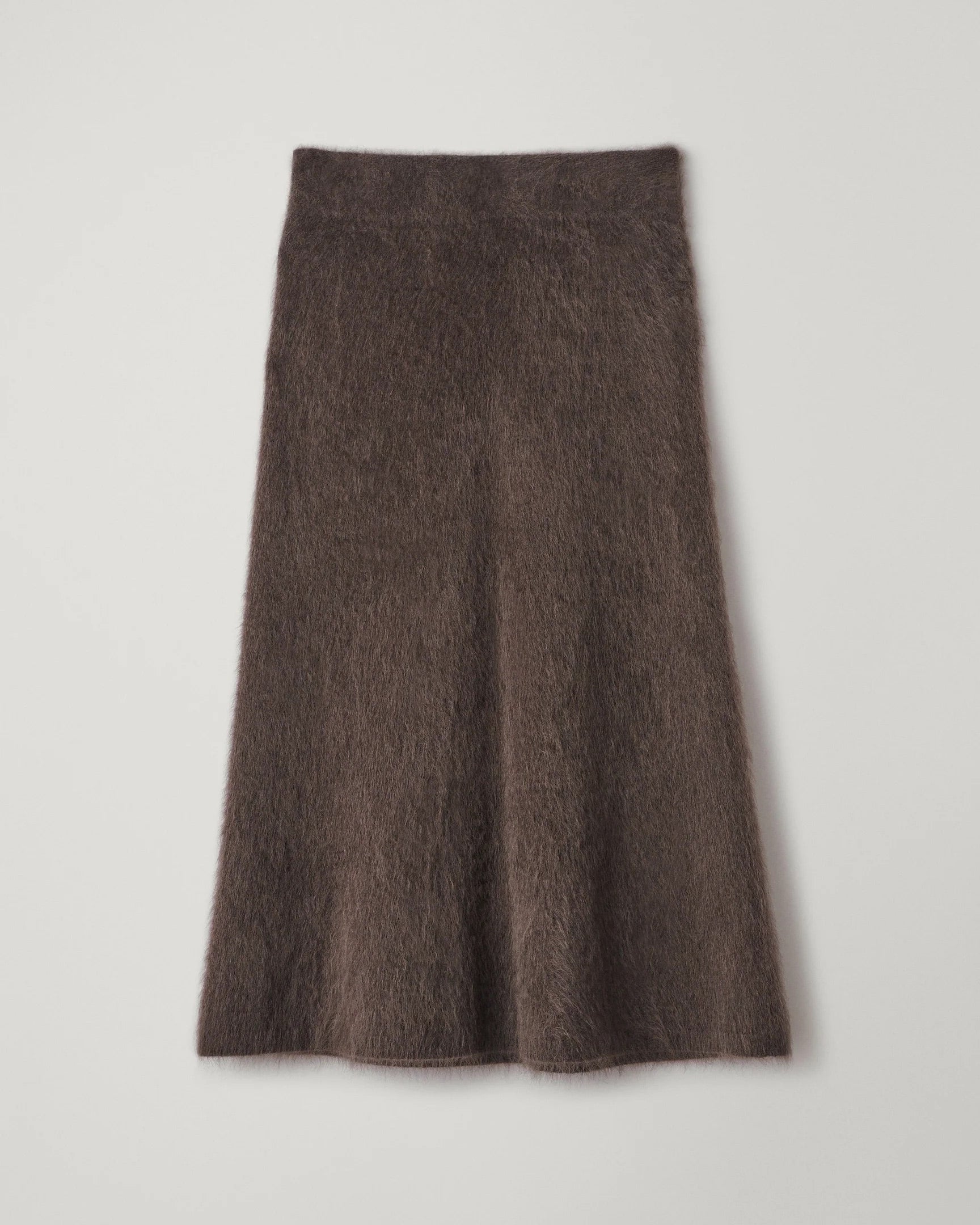 A lofty statement, the Asta skirt is crafted in our signature brushed cashmere with a plush, cloud-like texture. The regular fit, A-line silhouette falls from a comfortable mid waist secured with an elasticated waistband into a flared skirt which crops below the knees.
