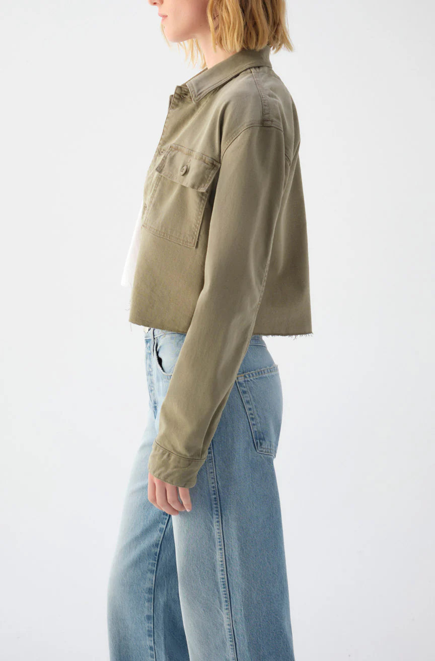 A cropped version of the classic utility jacket, with a collar at the neckline, front patch and flap pockets, and finished with a raw hem for a lived-in look. Made from a perfect mix of cotton and lyocell, the result is a super comfortable all-season fabric.