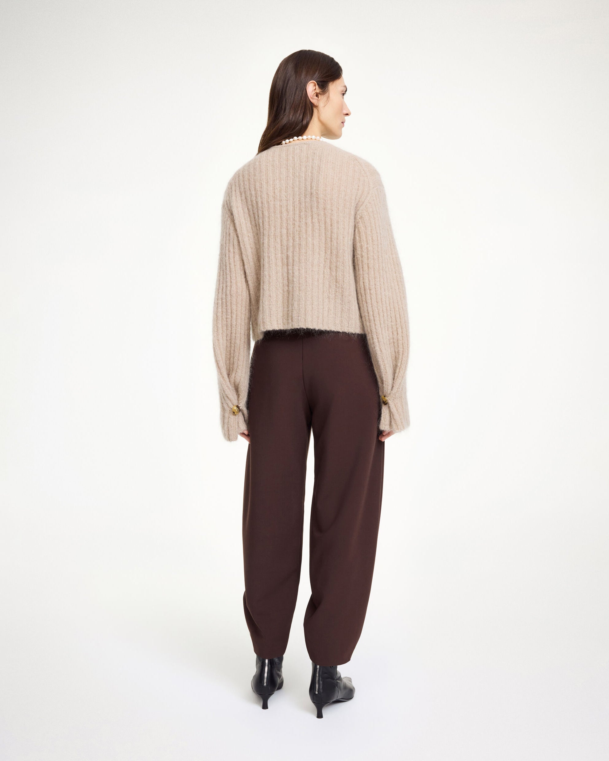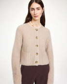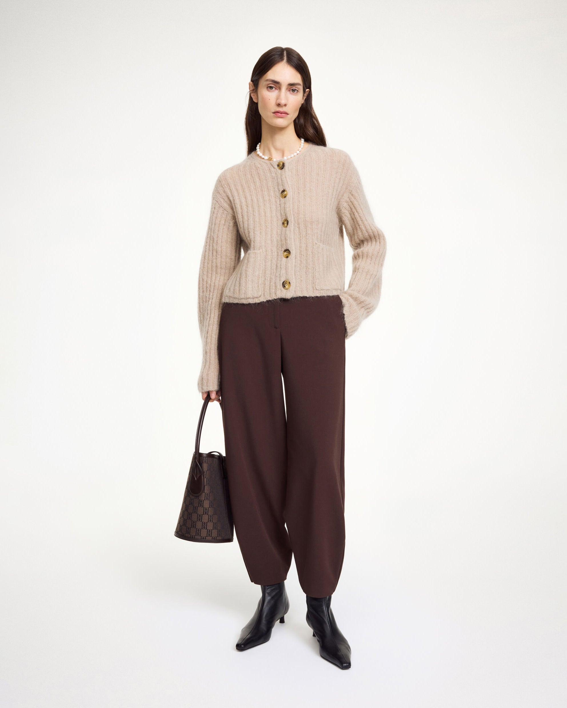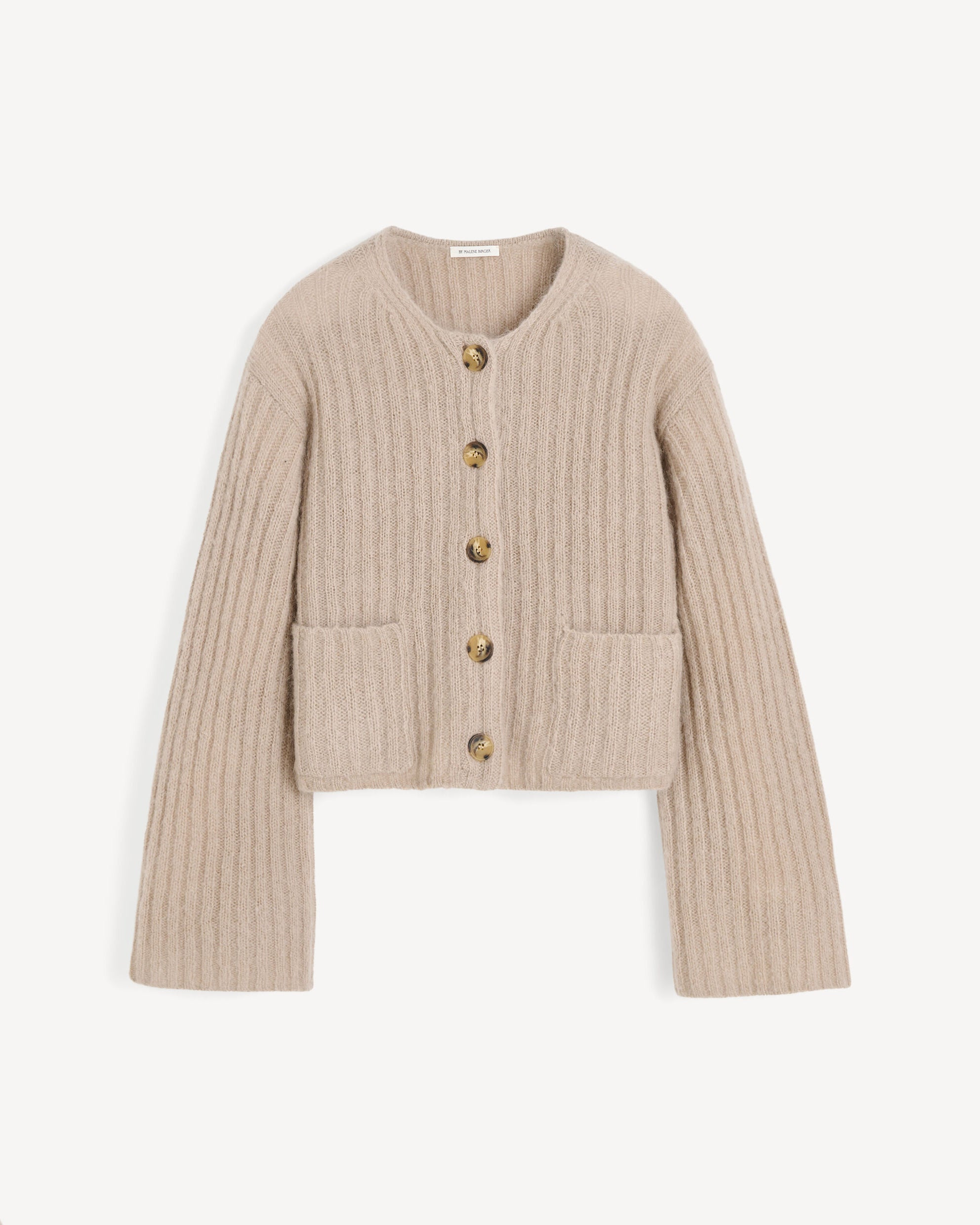 A wool mix cardigan – such as the Cierrou Rib design – is key to transitional dressing. The slightly cropped silhouette is made in a rib fabrication and completed with snug buttons and front pockets. Use it as a layering piece over dresses, shirts and T-shirts – and peel it on and off depending on the weather.
