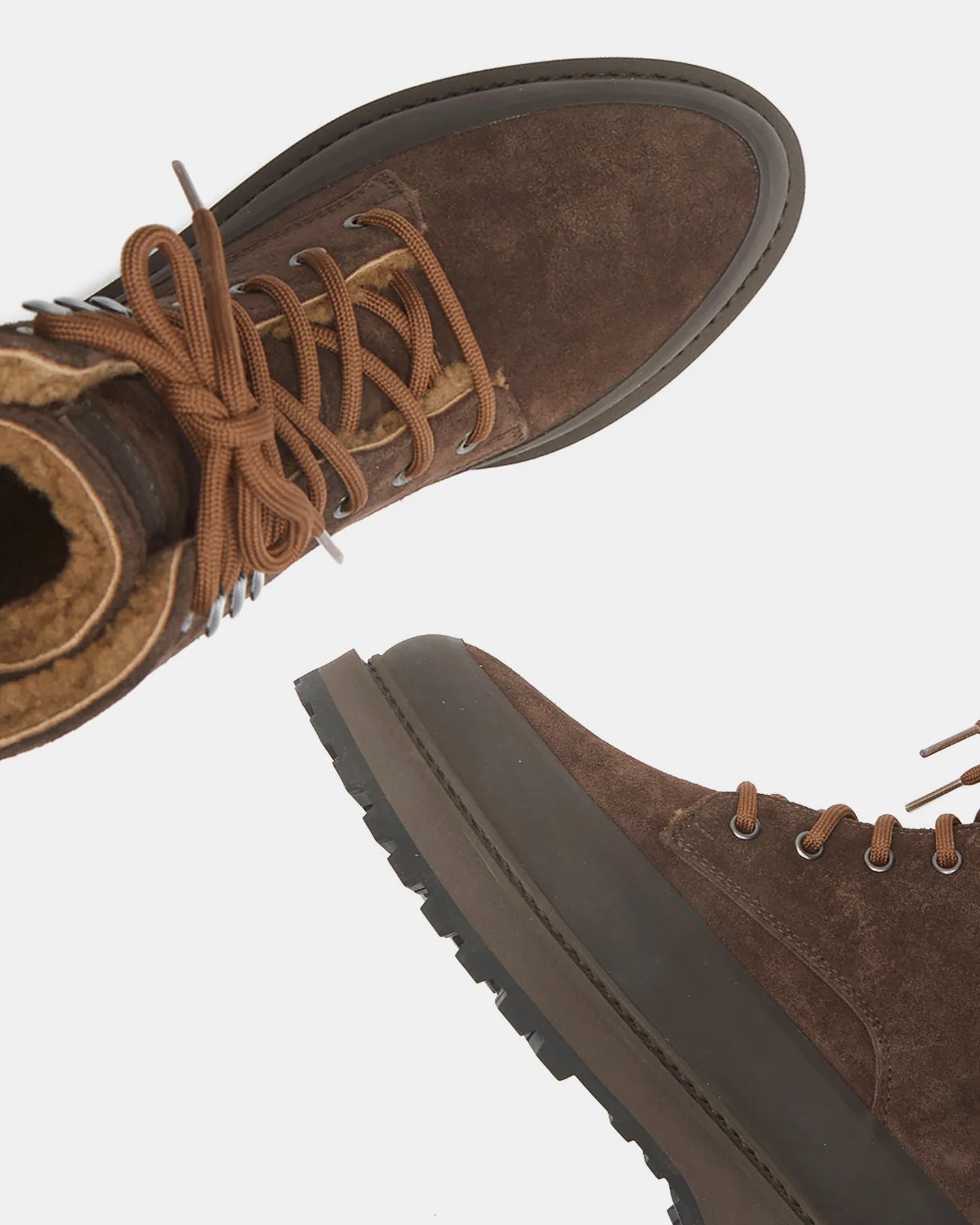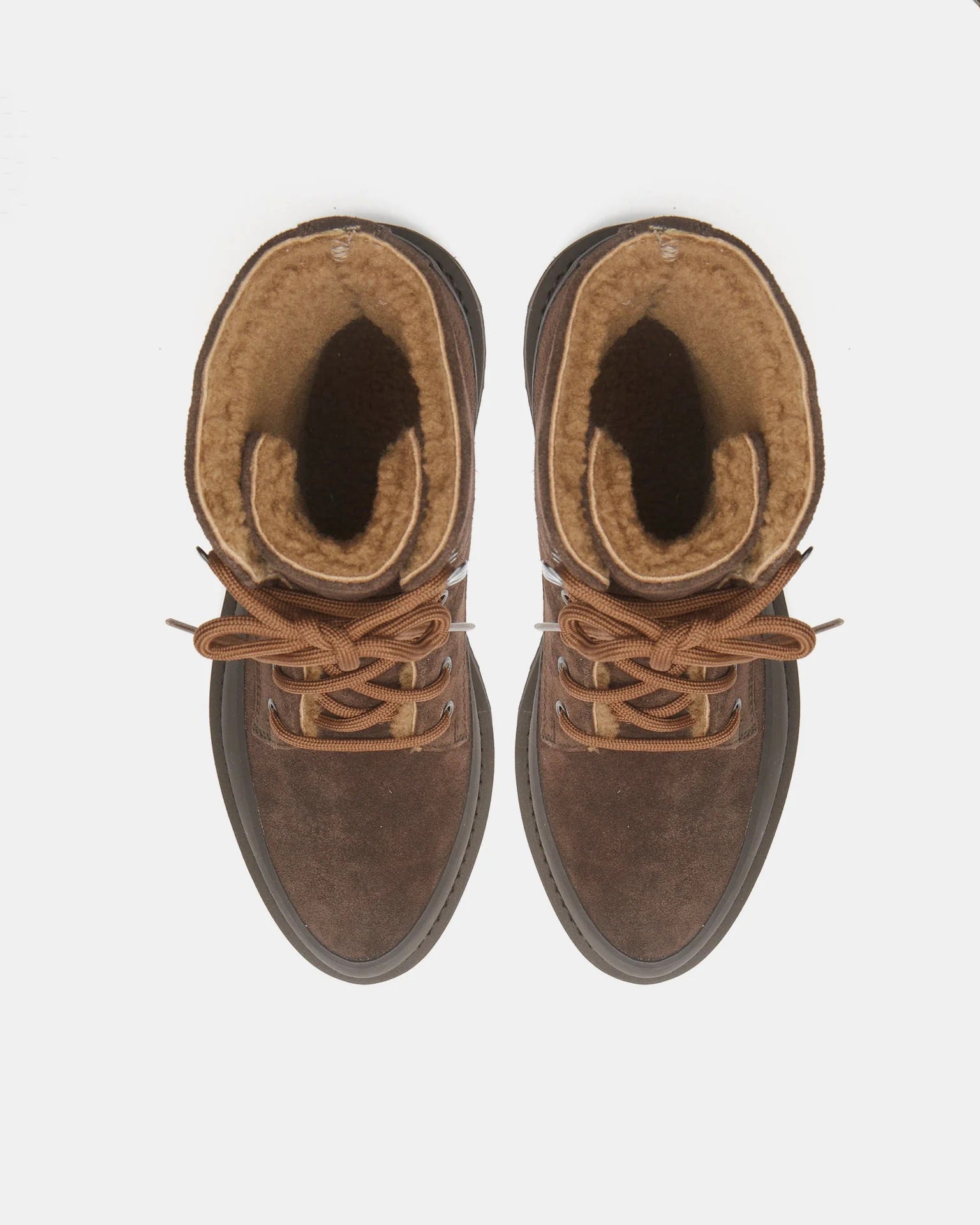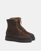Dolomite Boot, handcrafted in brown suede with a cushioned shearling lining, tread in smooth, anti slip rubber with a 25mm heel. Made in Italy.