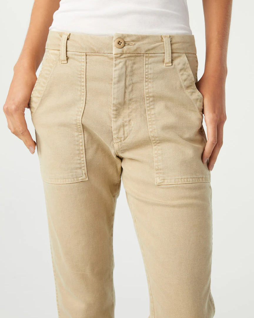A classic army pant—but cooler and with just the right amount of stretch. Slightly relaxed, cropped straight leg with trouser styling and utilitarian back and front patch style pockets. Just like its name, it's meant to feel easy to wear and effortless to style. Zip fly.