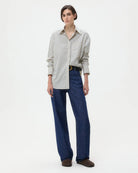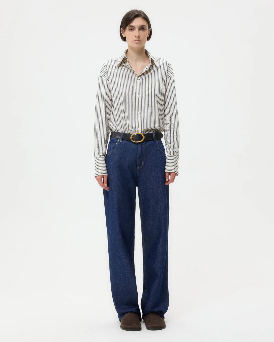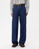 Mid-rise, straight leg jeans in indigo denim. The Easy boy is a relaxed, slouchy fit. Complete with a five pocket style, concealed zip-fly, belt loops, metal shank and custom applied rivet hardware.