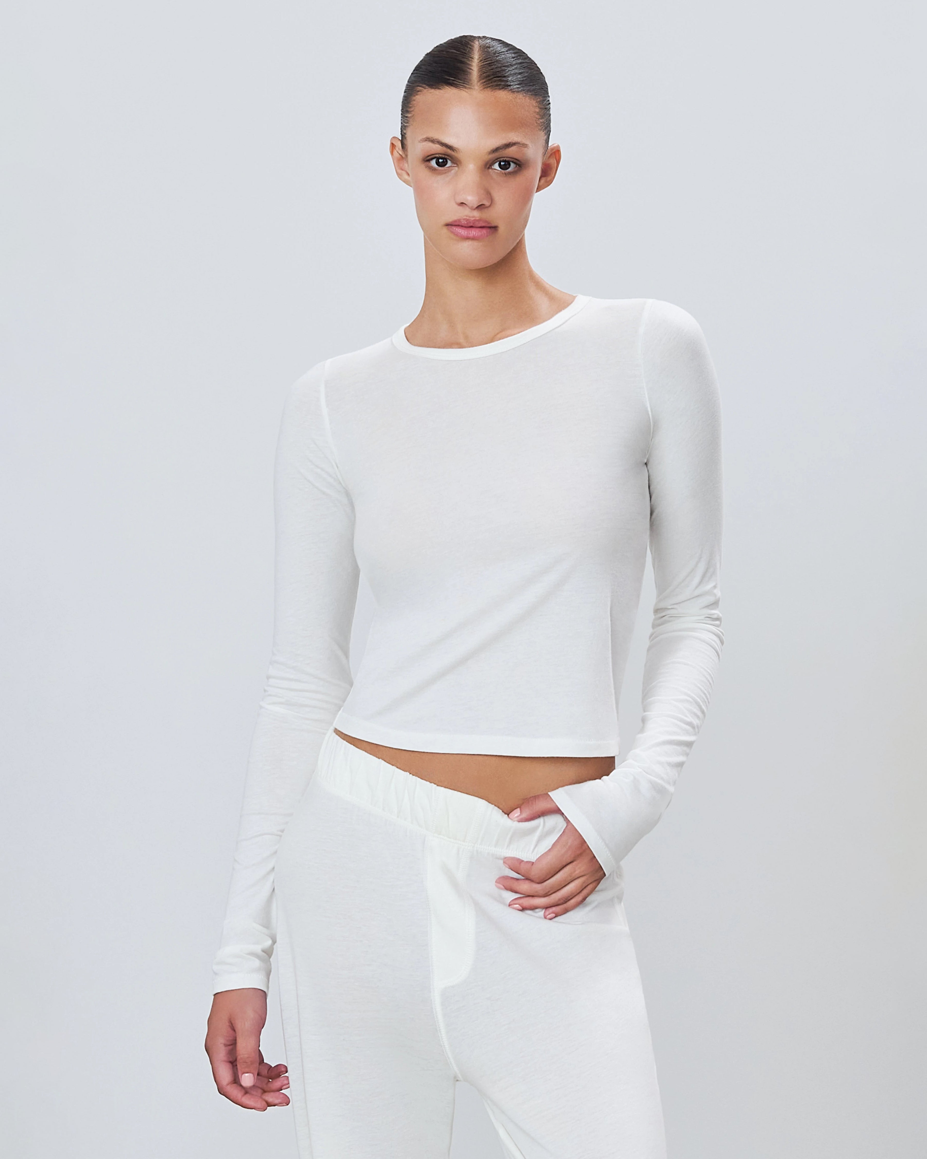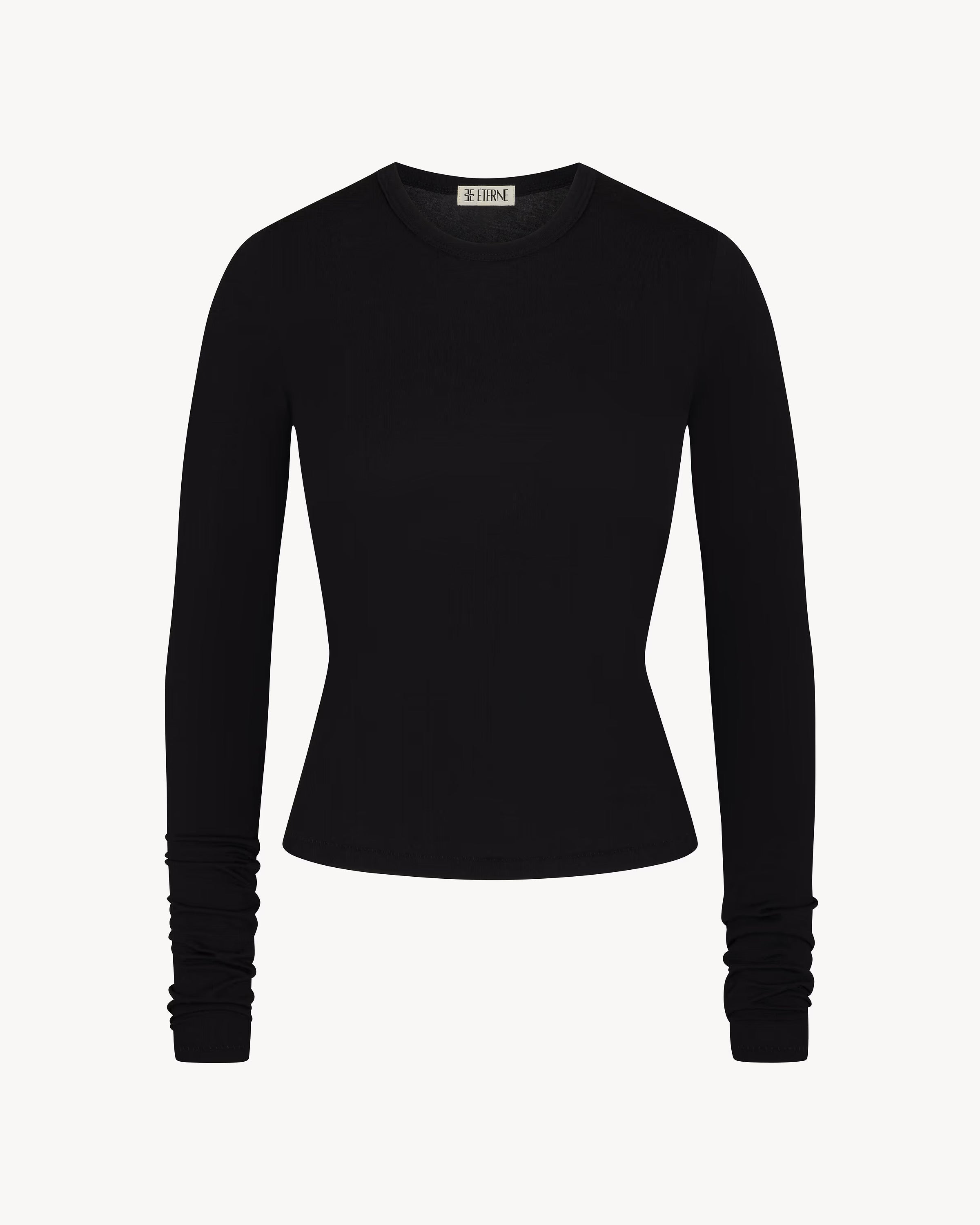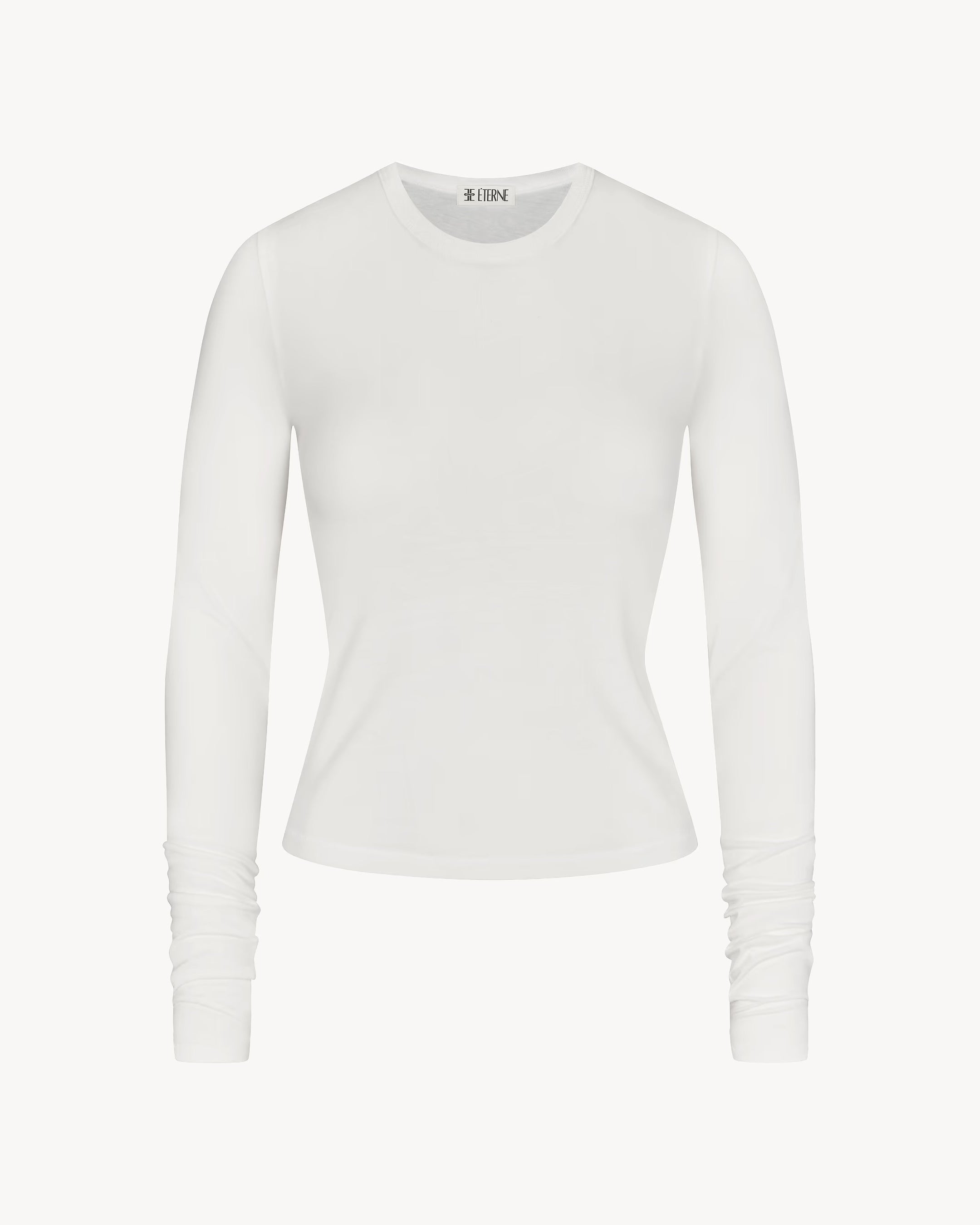 ÉTERNE's Fitted Crewneck Long Sleeve T-shirt is crafted from our soft cotton modal blend, offering a slim fit and full length—a versatile essential for everyday wear.