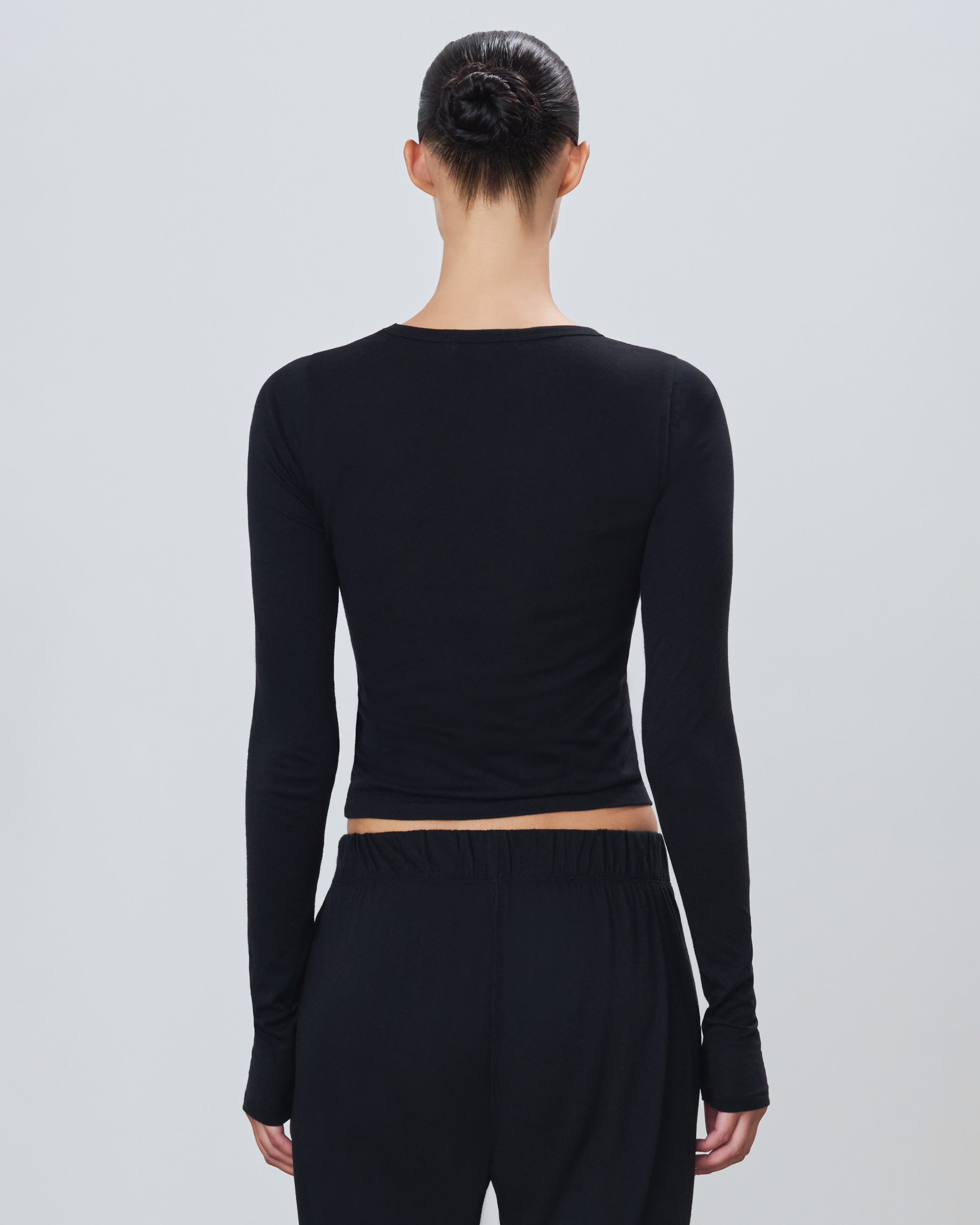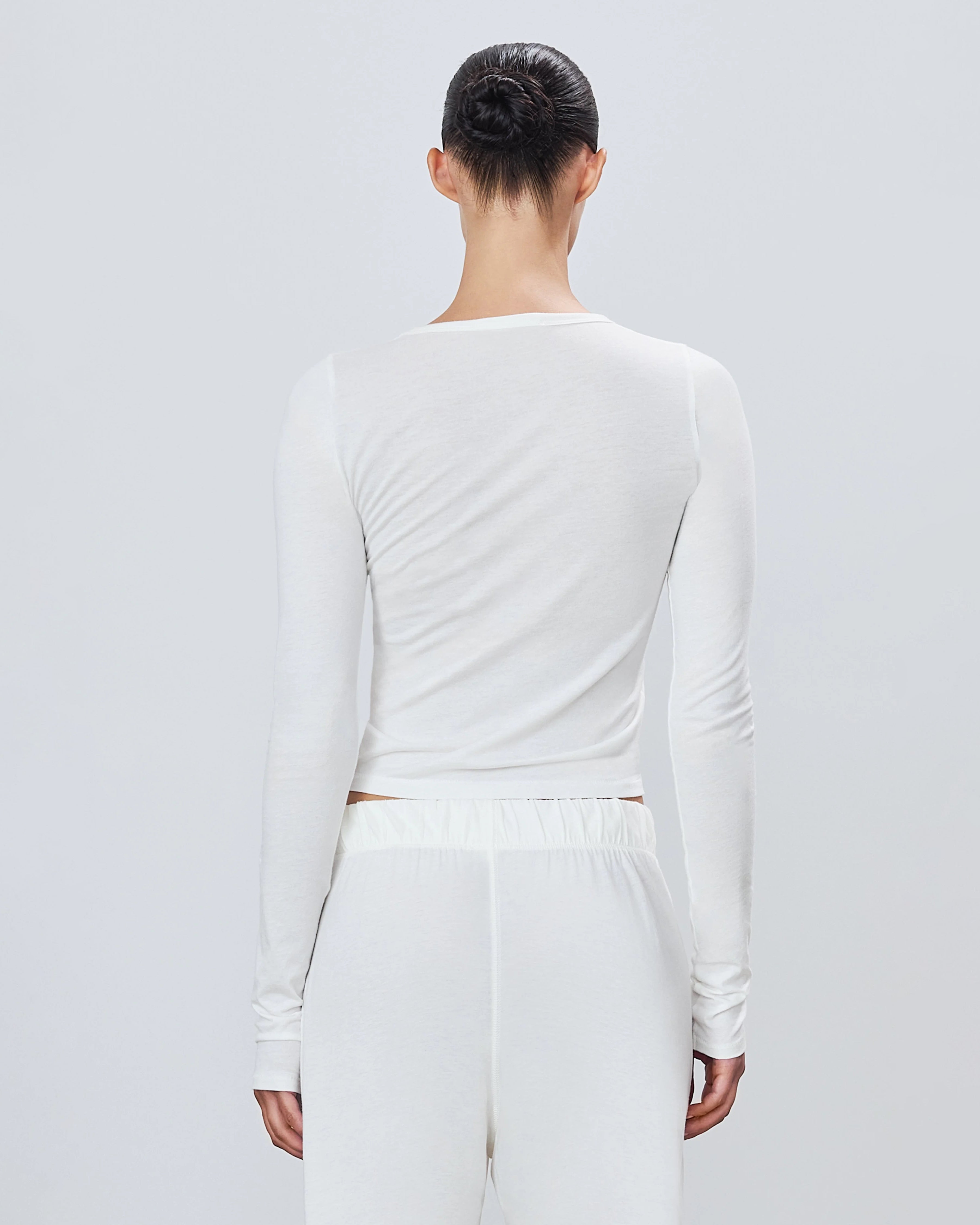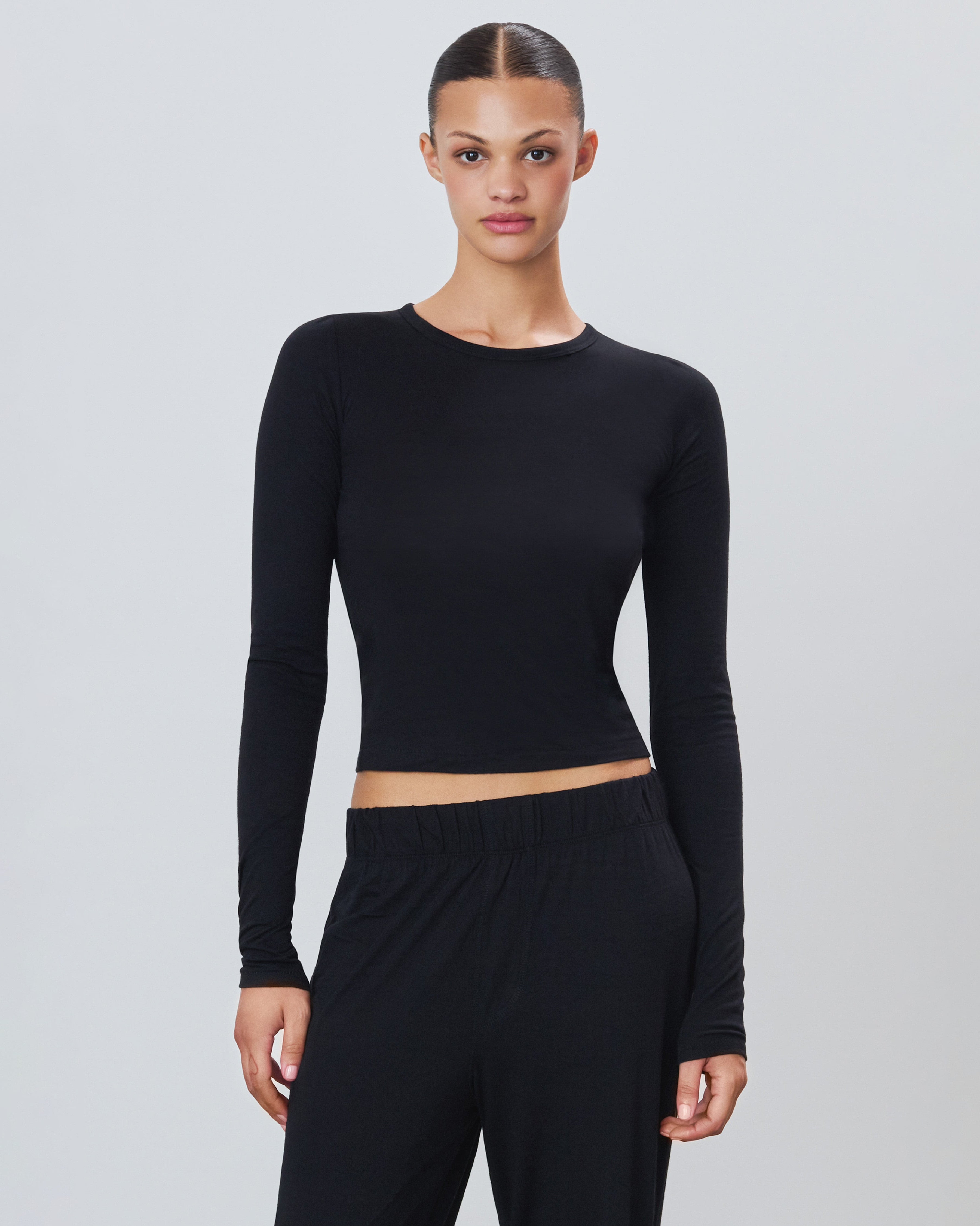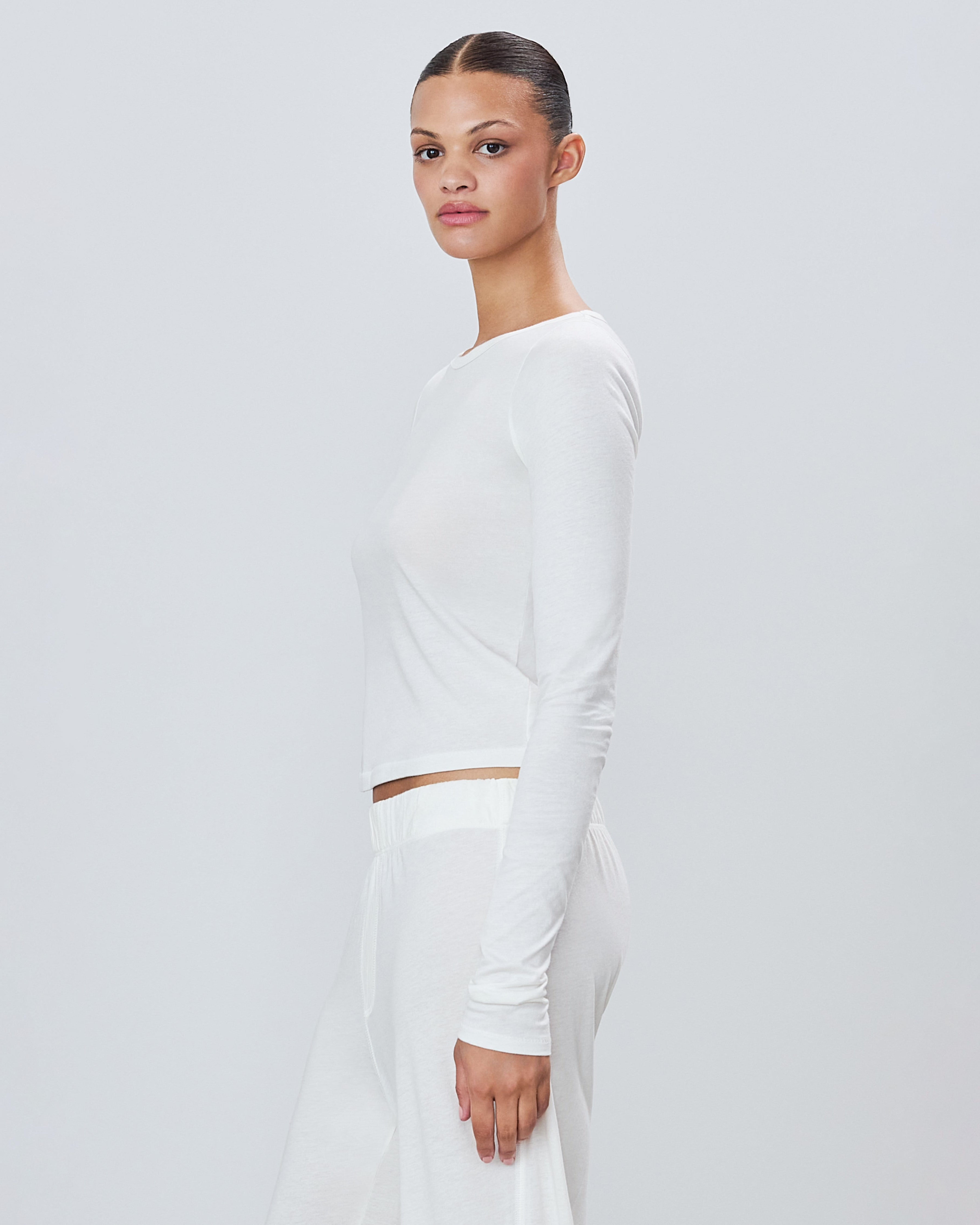 ÉTERNE's Fitted Crewneck Long Sleeve T-shirt is crafted from our soft cotton modal blend, offering a slim fit and full length—a versatile essential for everyday wear.
