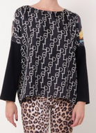 LOOSE BIFACE ROUND COLLAR TOP IN SILK TWILL, VISCOSE JERSEY LONG SLEEVES.