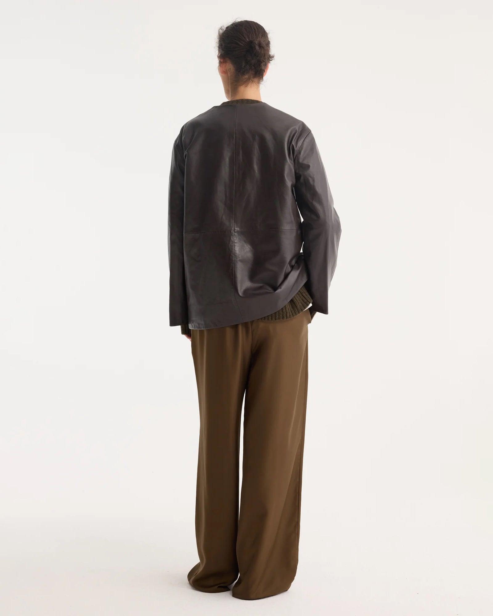 mandarin leather jacket in Mahogany
