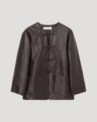 The signature Róhe 'Marie' jacket introduced in a soft leather. A traditional jacket with a beautiful pankou closures along the front and functional patch pockets. A striking design that makes an instant impression on any occasion.