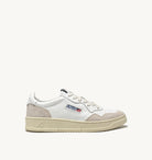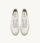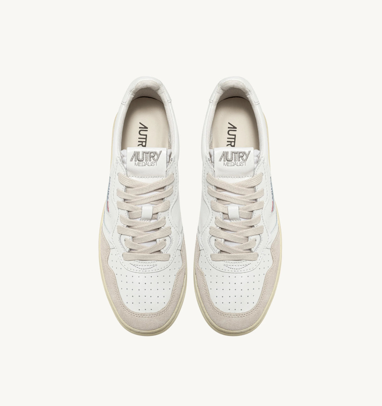 This women's sneakers is crafted in soft white leather with a supple, genuine look and feel, enriched with beige suede panels that lend the design a distinctive finish. The white leather heel tab is branded with the Autry logo.