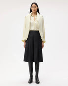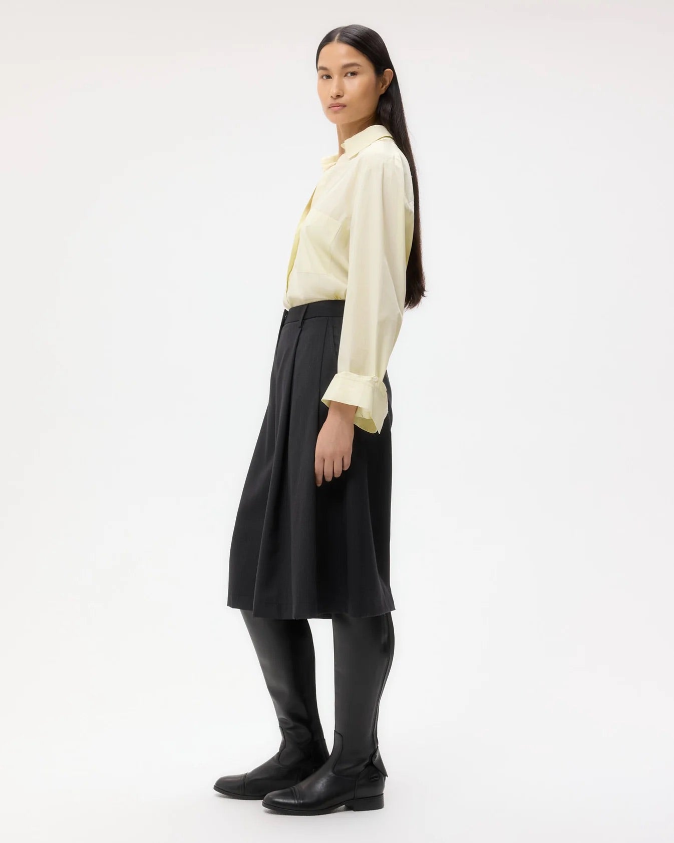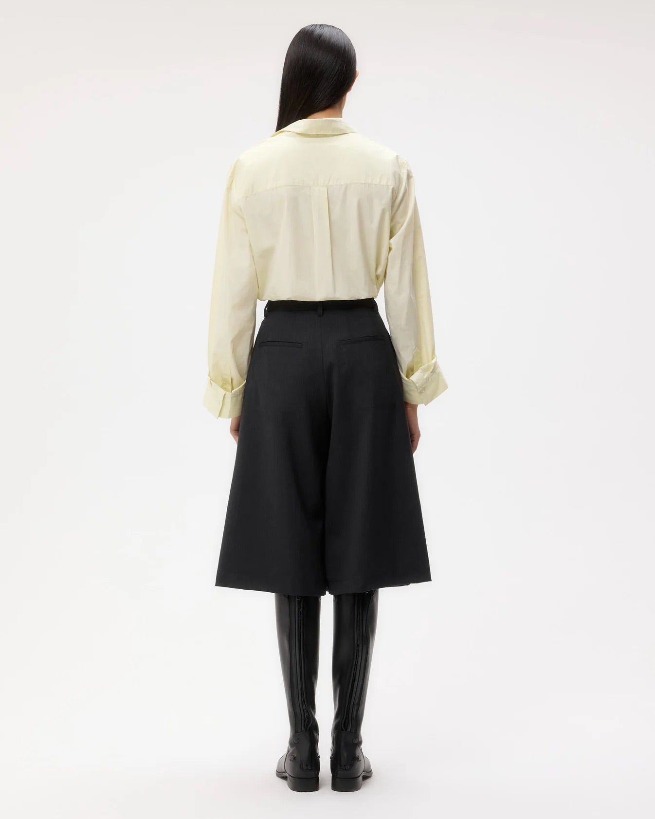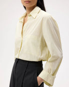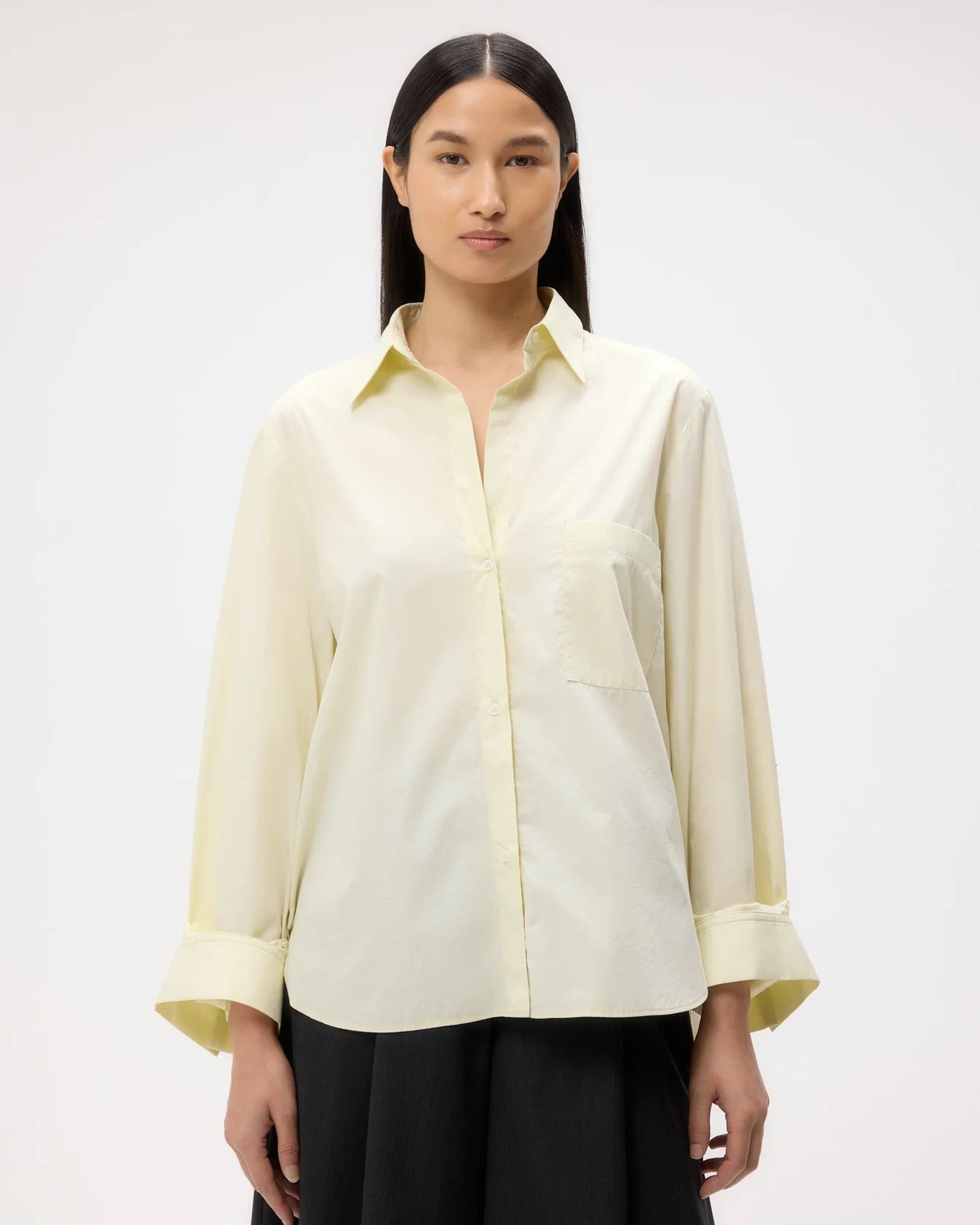 Oversized button down shirt in superfine Italian cotton shirting. The Next Morning is a relaxed silhouette with a center box pleat at the back. Complete with an exposed button up placket, chest patch pocket, spread collar and single roll button cuffs.
