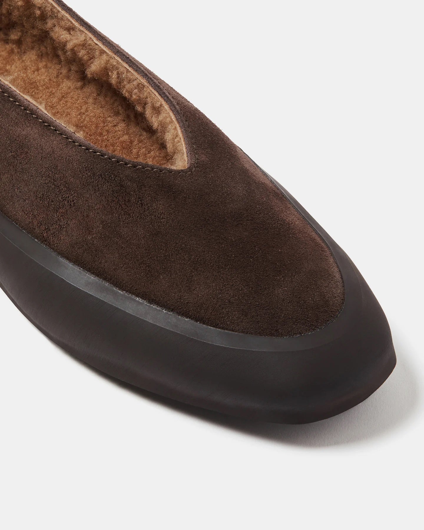 Apres Ski in Brown Shearling. Cushioned insole with tonal shearling lining, tread in smooth rubber. 8mm heel. Made in Italy.