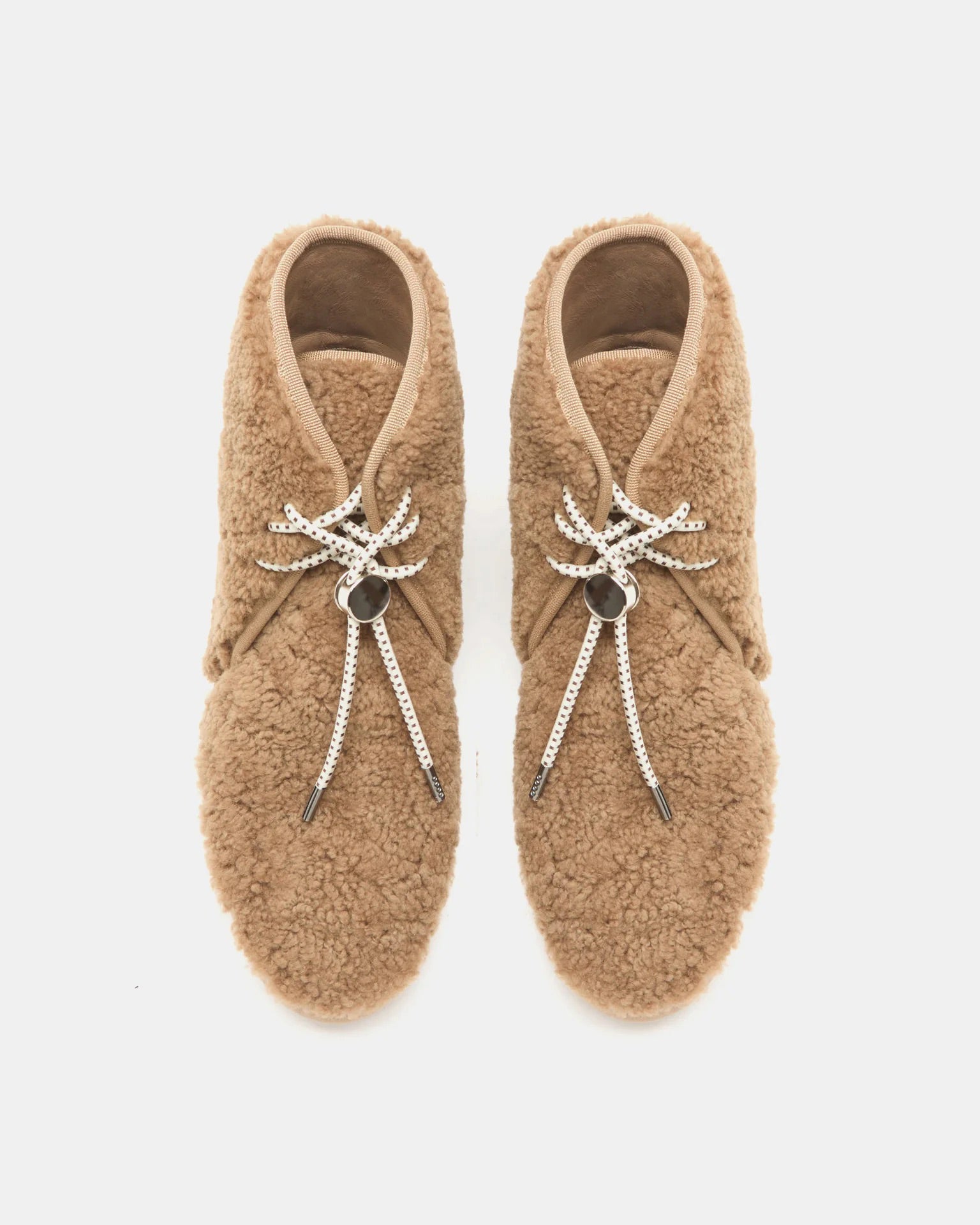 Desert Boot, handcrafted in nut shearling with lace up fastening, a cushioned calf leather insole and a removable shearling insert. Outer soles are anti slip rubber with a 25mm heel. Made in Italy.