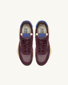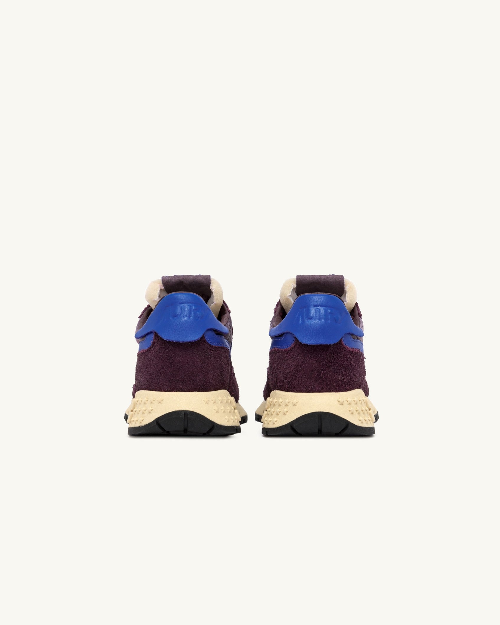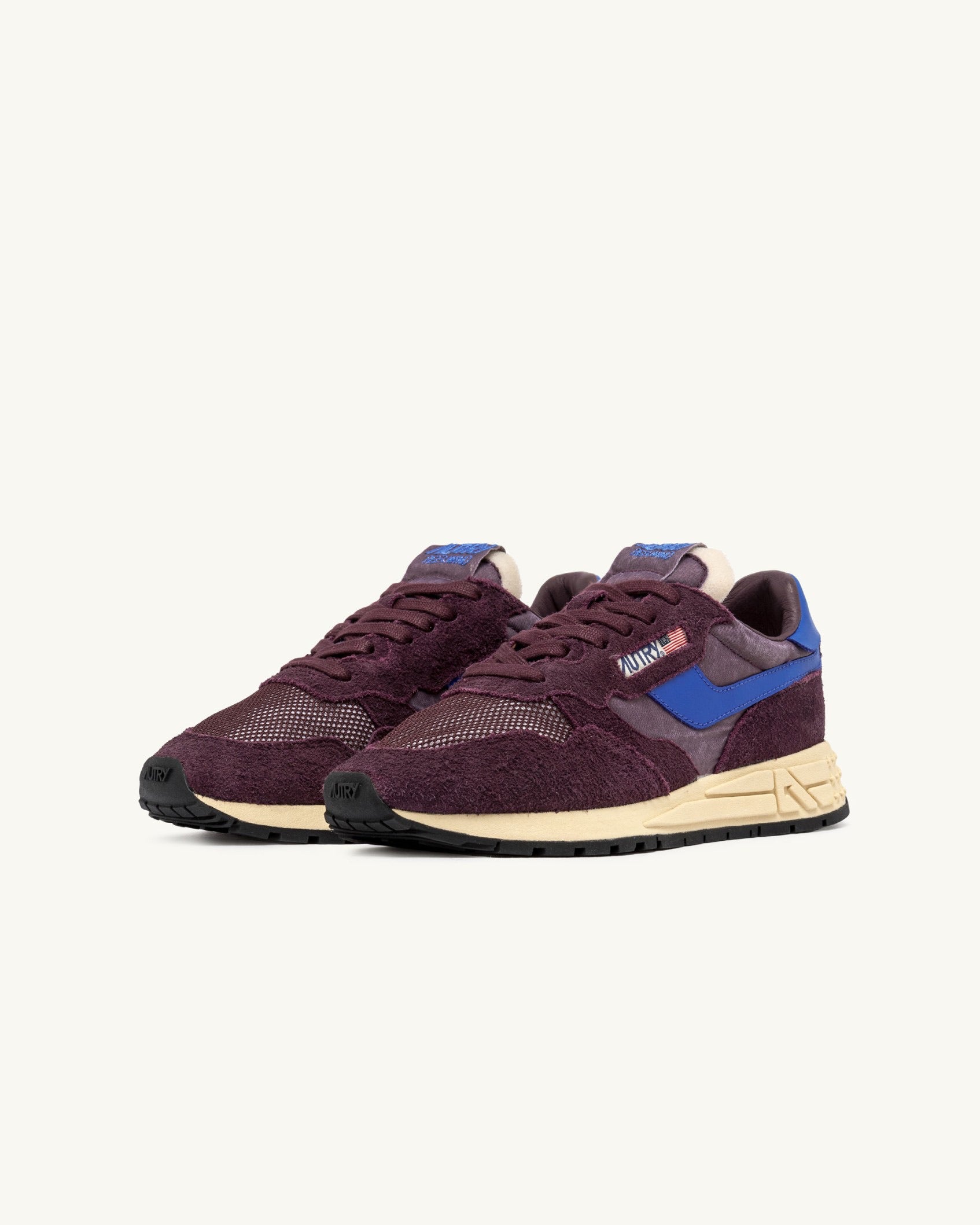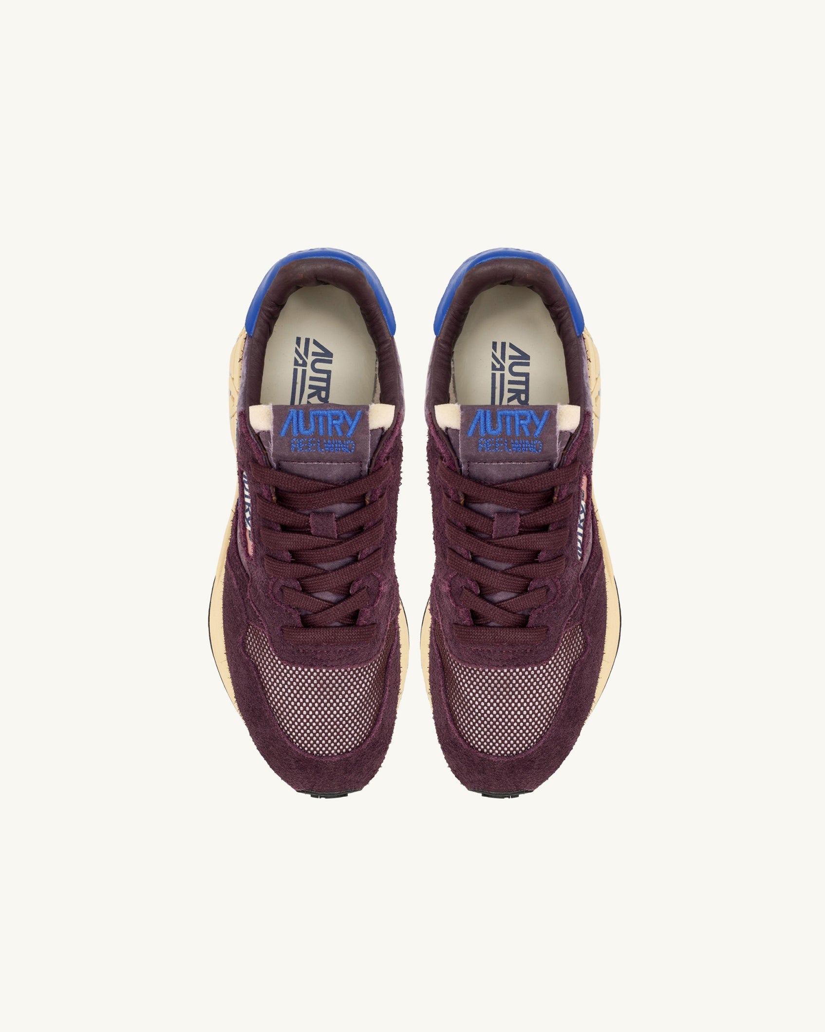 Innovative, light and extremely flexible, Reelwind Autry sneakers draw inspiration from the running world. The women's style is crafted from a mix of burgundy suede and nylon, with side panels in blue leather.