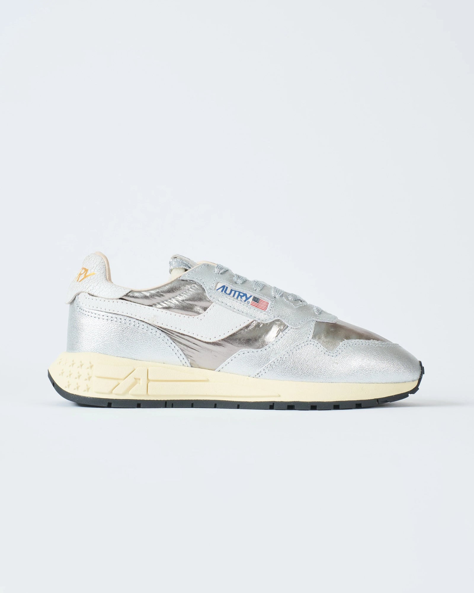 Innovative, light and extremely flexible, Reelwind Autry sneakers draw inspiration from the running world. The women's style is crafted from a mix of burgundy suede and nylon, with side panels in blue leather.