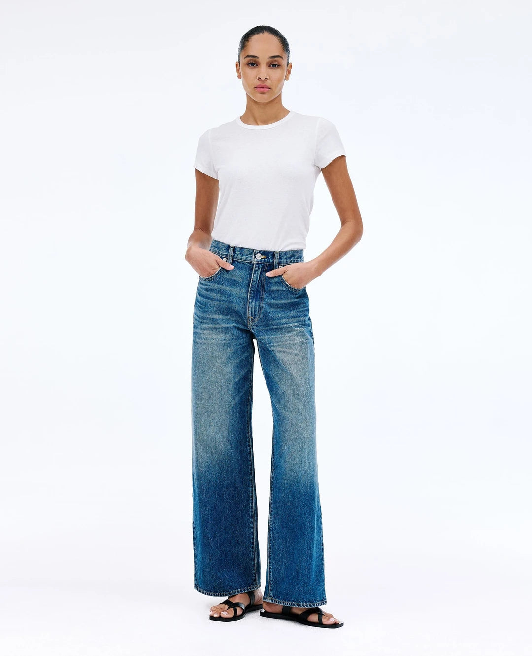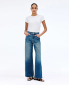 Selena features a relaxed silhouette with a mid-rise waist and wide-leg design, combining effortless comfort with a refined look.