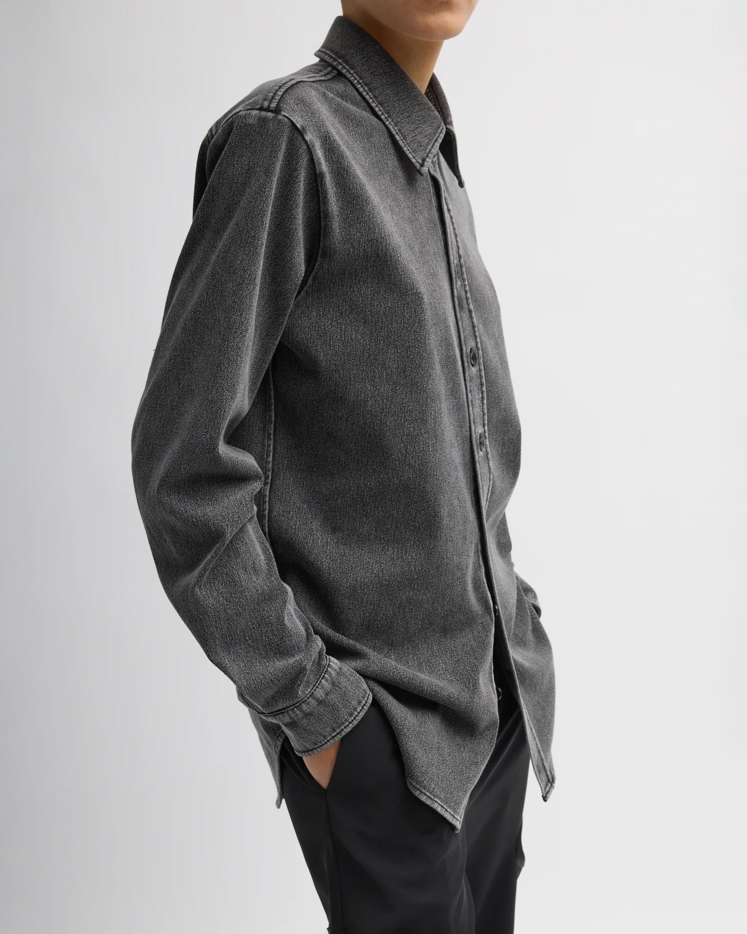 Stretch Denim Easy Shirt in Black