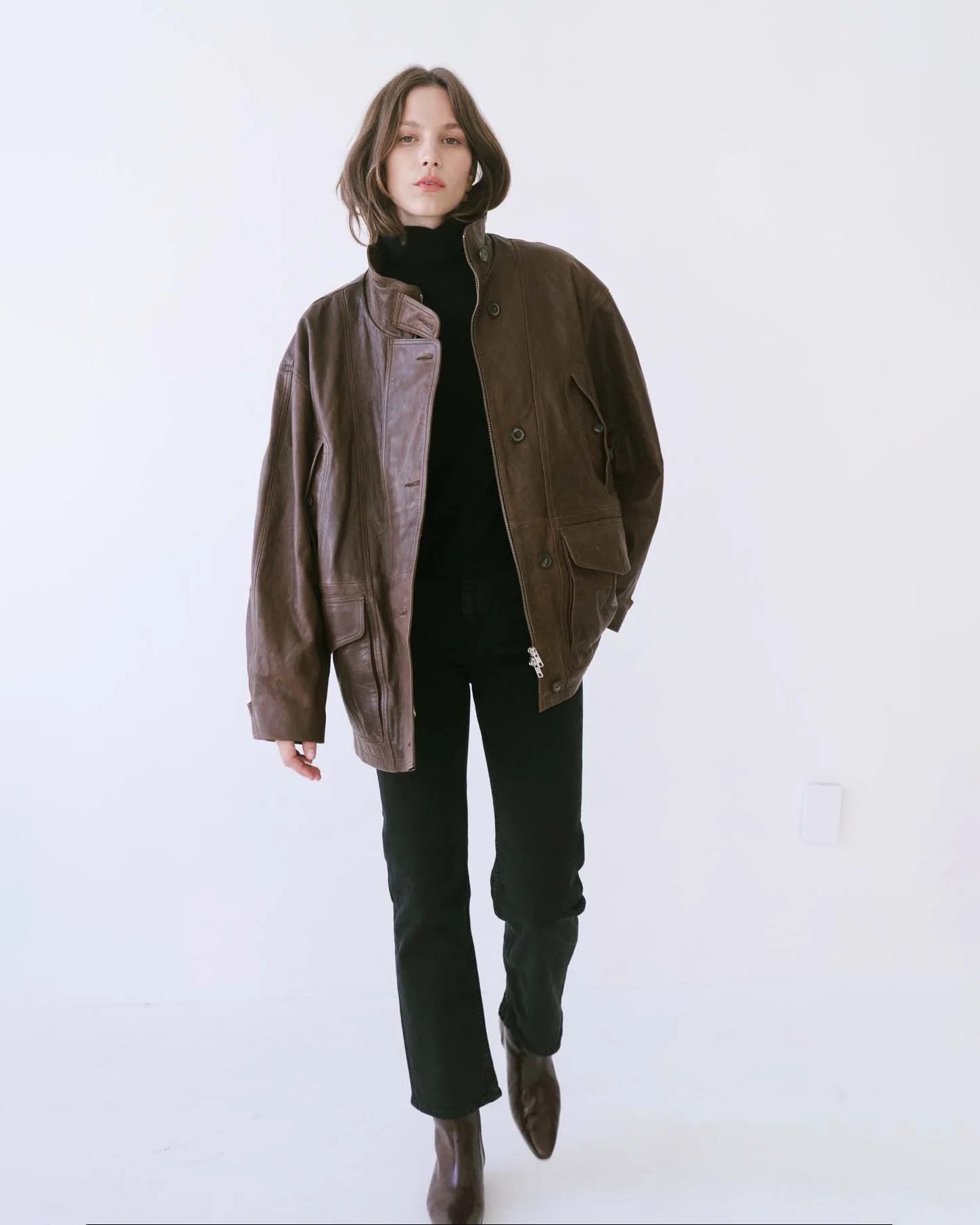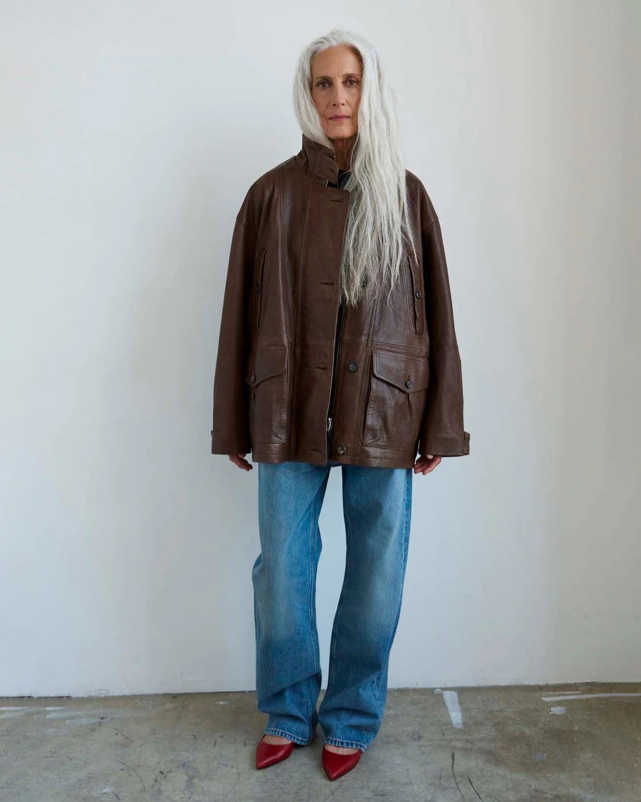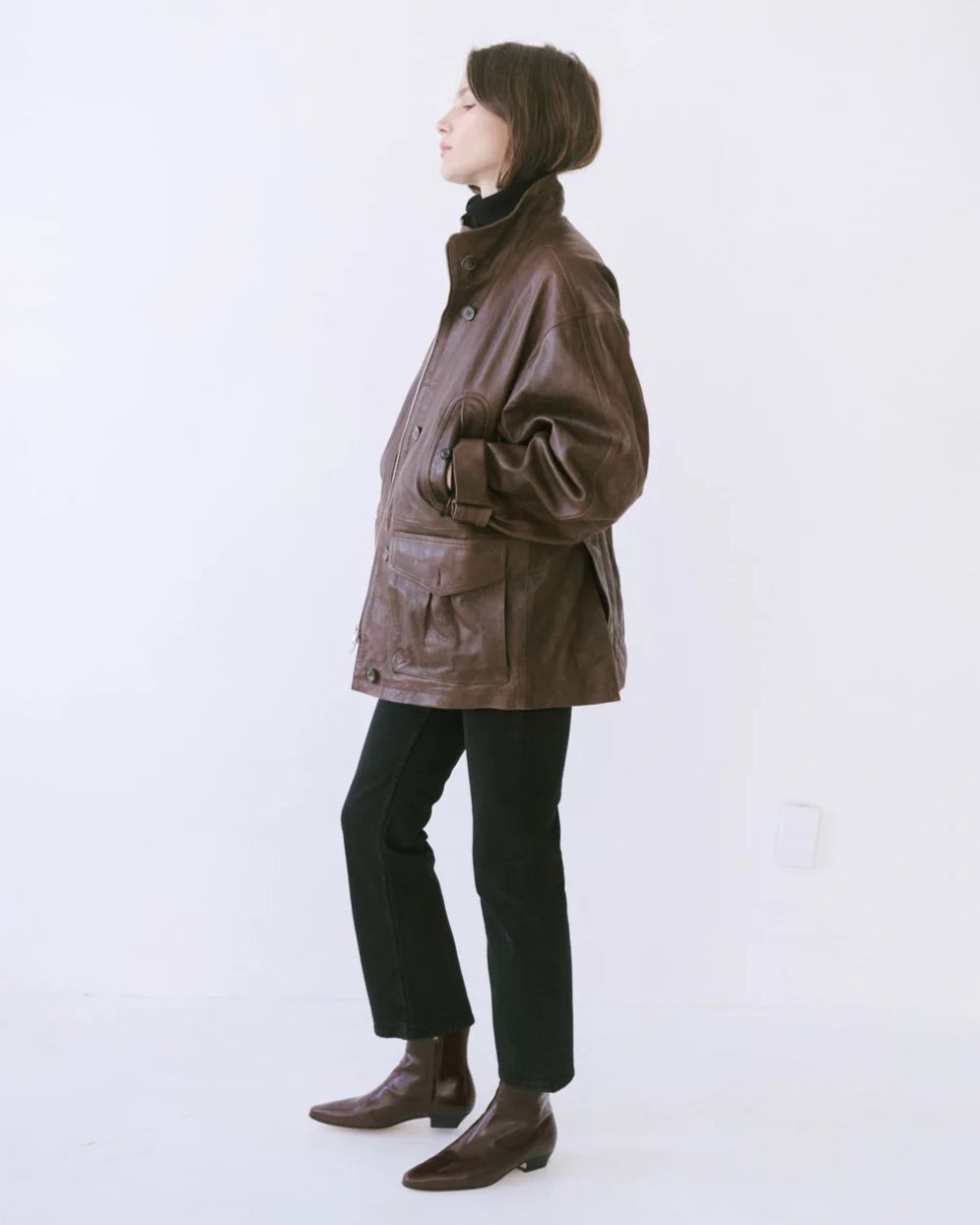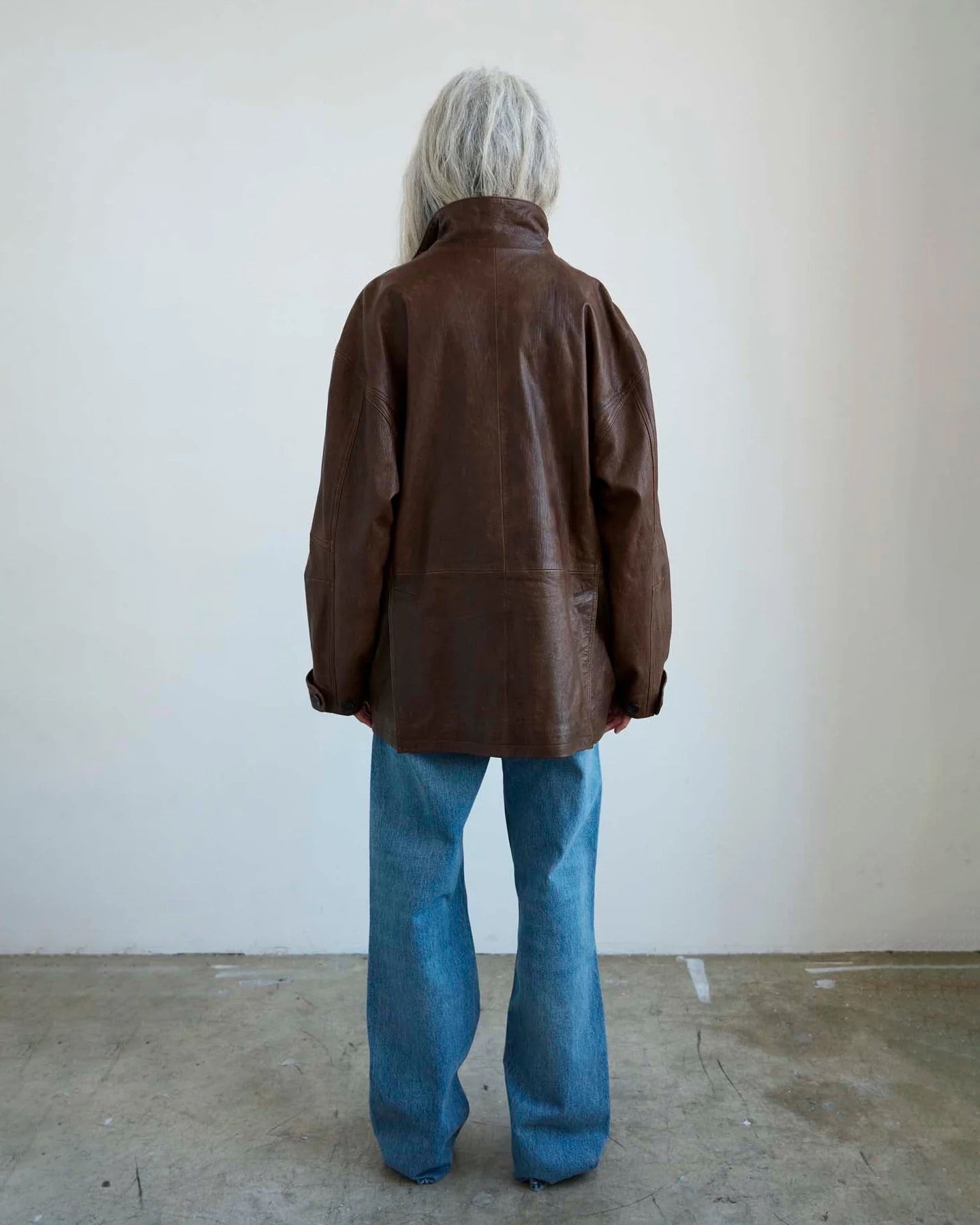The perfectly oversized, outdoor-inspired leather coat. Tailored in a textured, washed, Italian lamb. Soft, supple, and drapey with a finish that exudes vintage luxury. Tailored in Italy in a luxurious generational family factory who have perfected the art of outerwear.