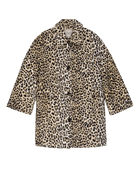 Inspired by a midcentury lady’s coat, The Car Coat is made from a faithful reproduction of a crushed faux fur leopard print with a quilted satin lining interior. With dropped shoulders, angled armholes, cropped sleeves, tailored collar, welt pockets, and sophisticated horn buttons up the front.