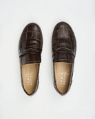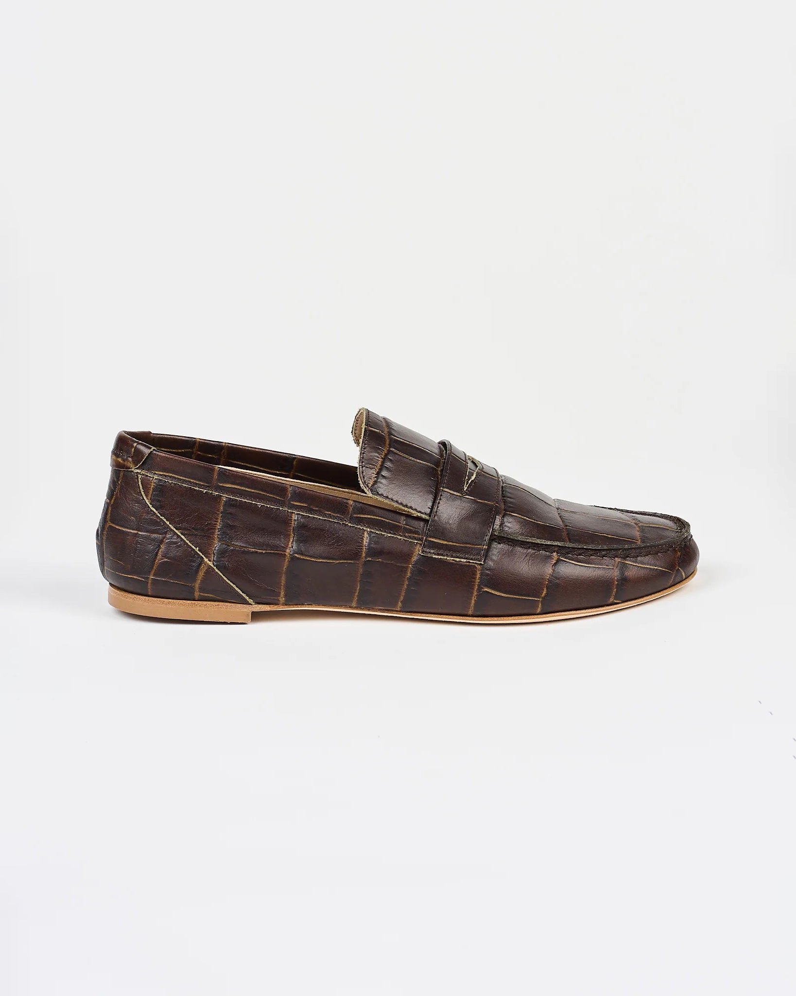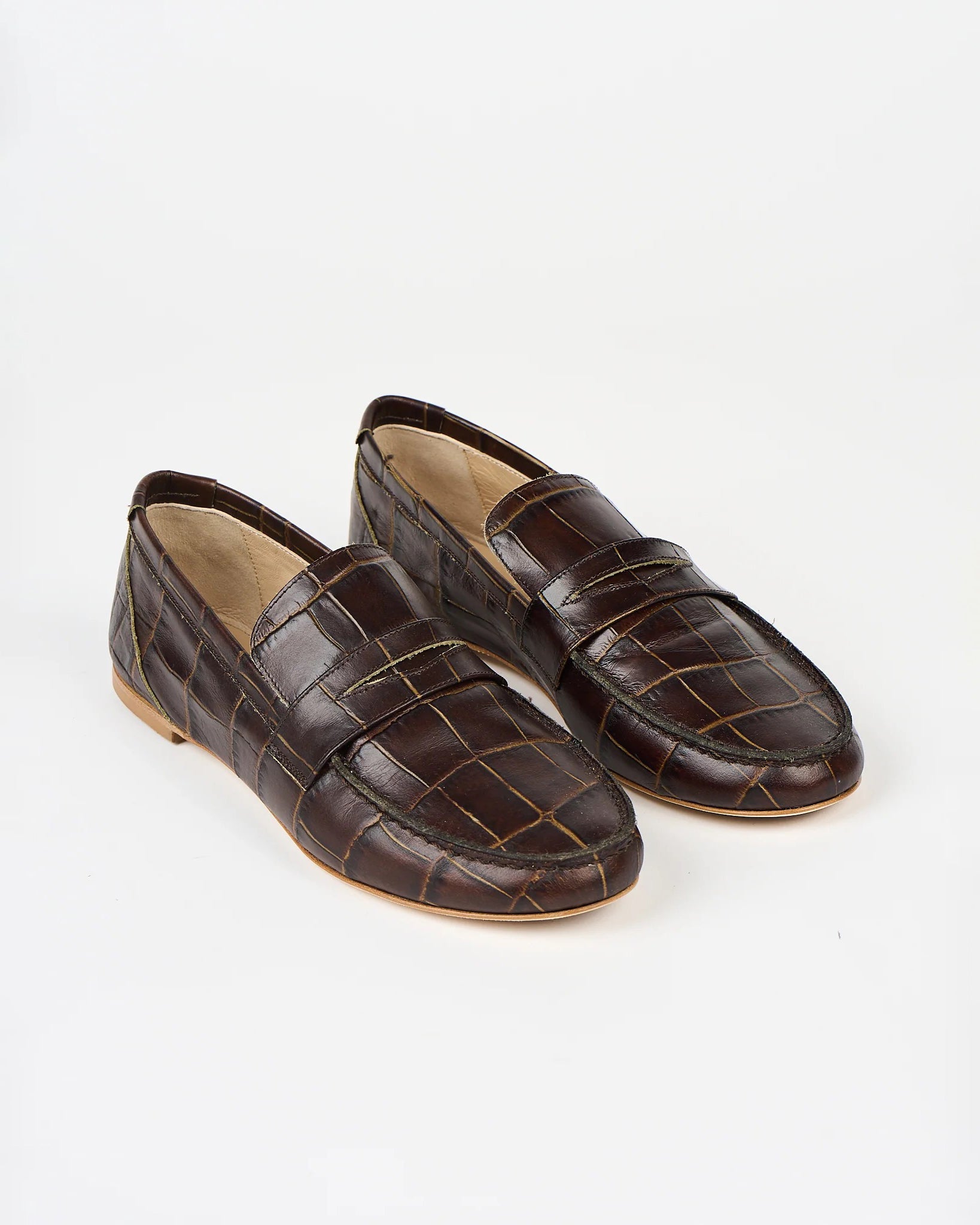 The Croc Embossed Leather runs true to an EU size, half sizes size up. Different leathers react different ways. This skins is very soft, but less supple and stretchy than the original buffalo leather and suede.