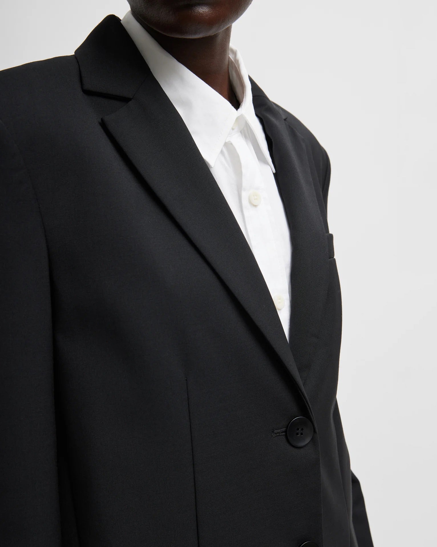 The Tropical Wool Max Blazer is a key foundation for the wardrobe and will quickly become your everyday blazer. Crafted from luxurious tropical wool this three-button silhouette is not a trend and it is here to stay. Featuring a notch lapel with patch pockets this straight fitting blazer will stand the test of time. Chill, yet classic, the relaxed fit modernizes this style.
