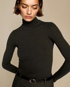 - Fitted turtleneck with long sleeves and center back seam detail.