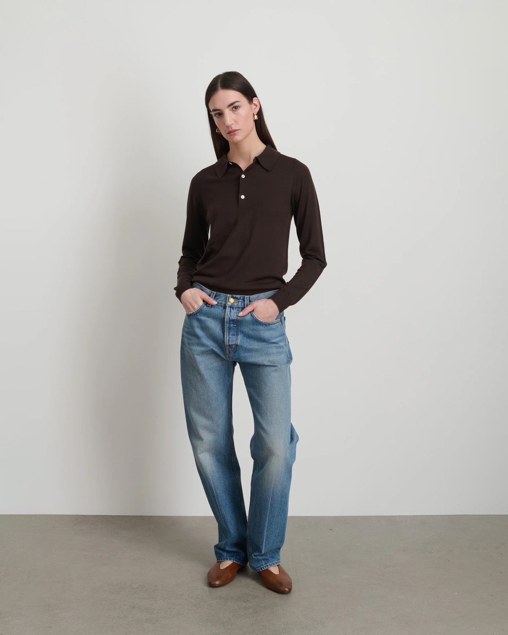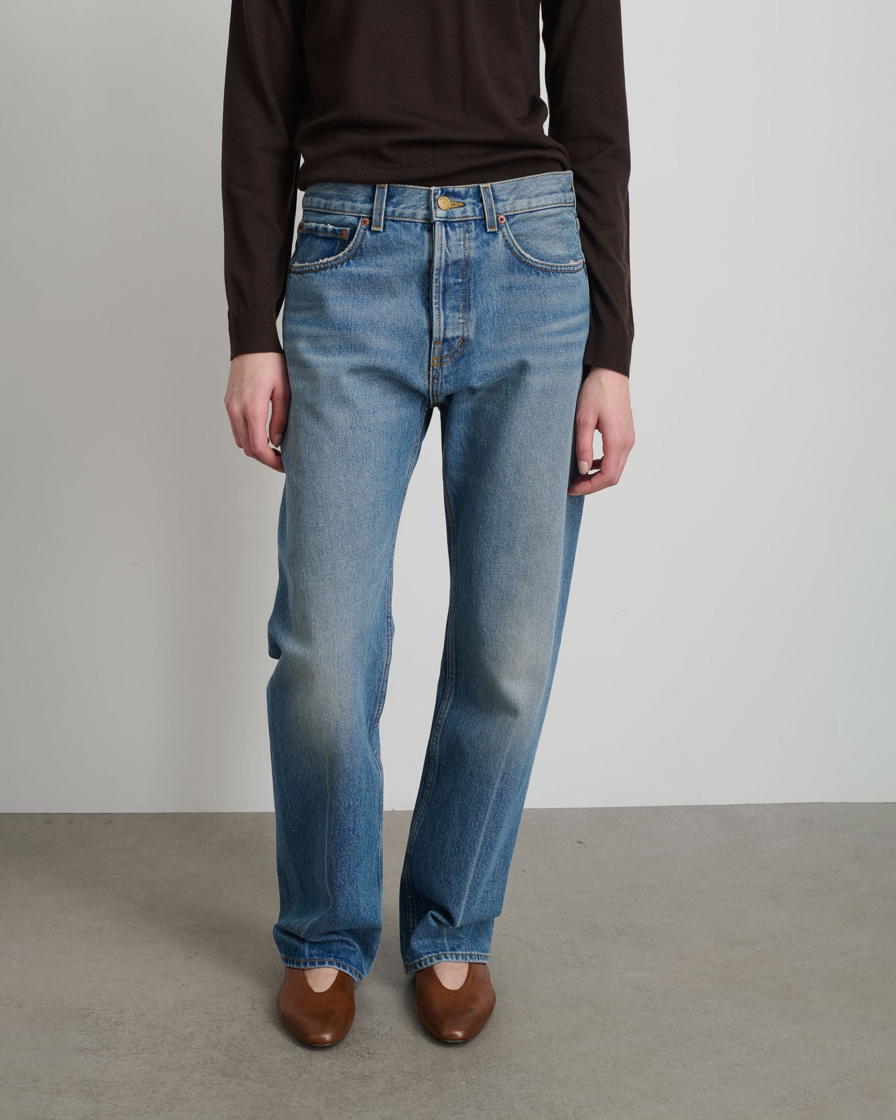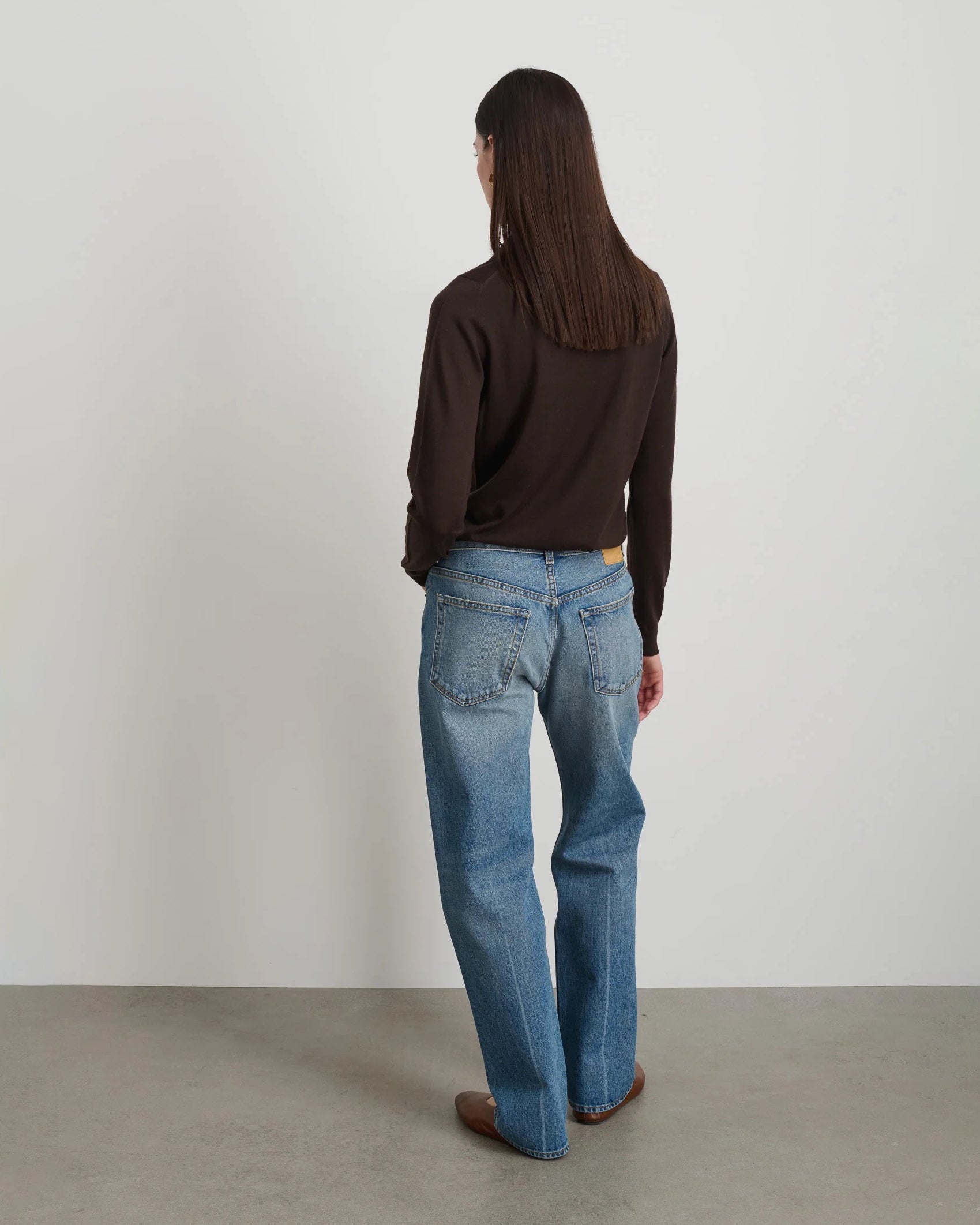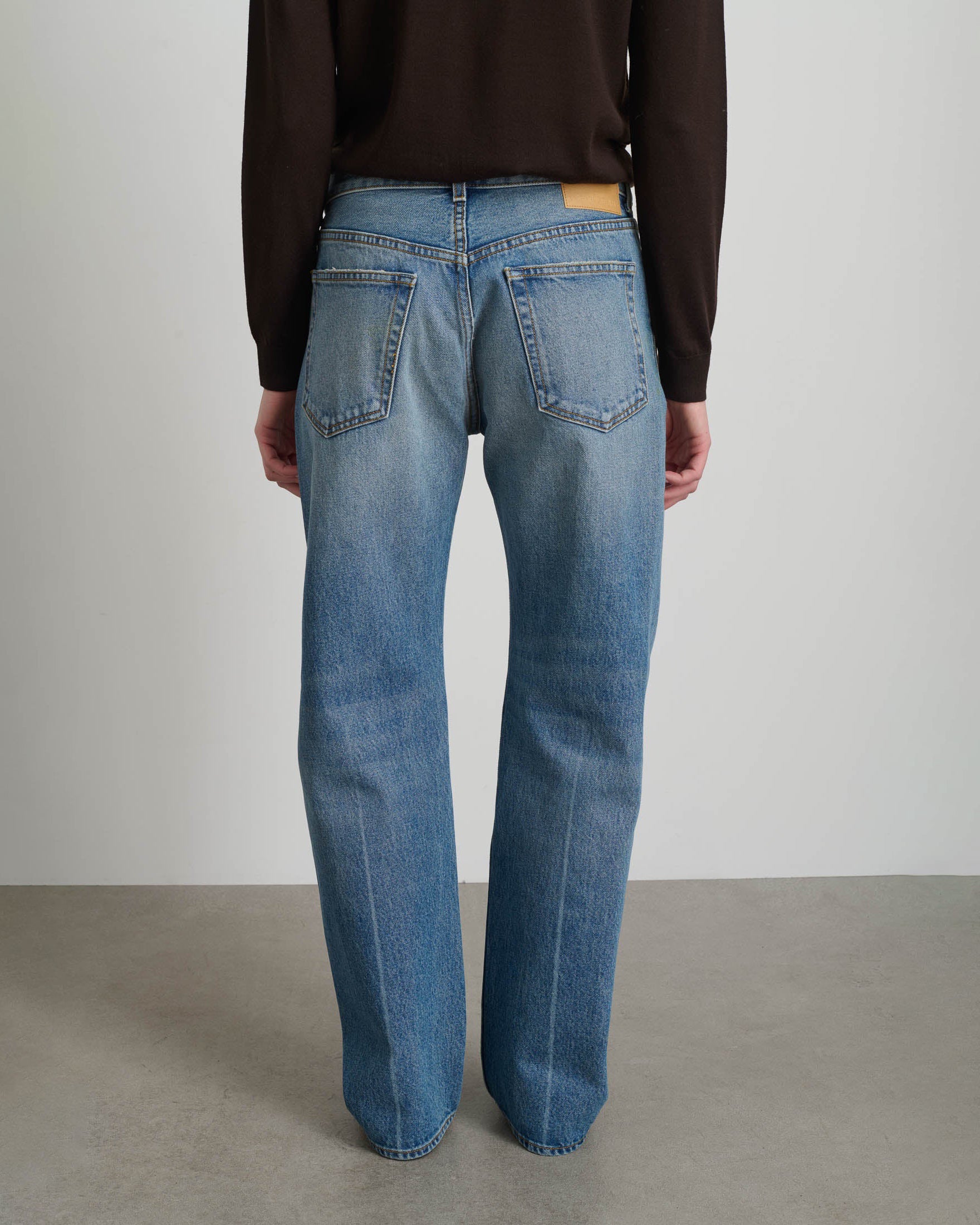 Introducing our draped mid rise straight, cut from classic roped dyed indigo denim with a tapered finish.