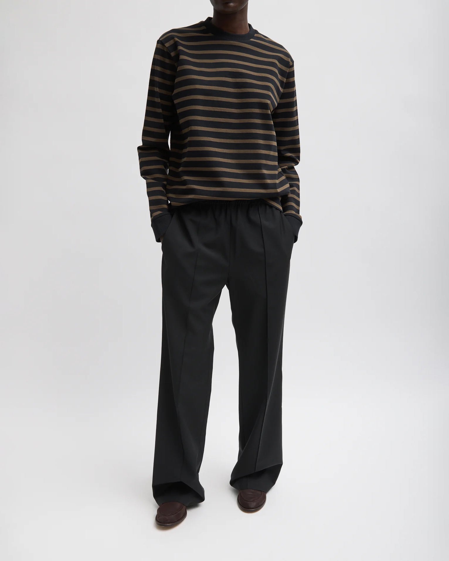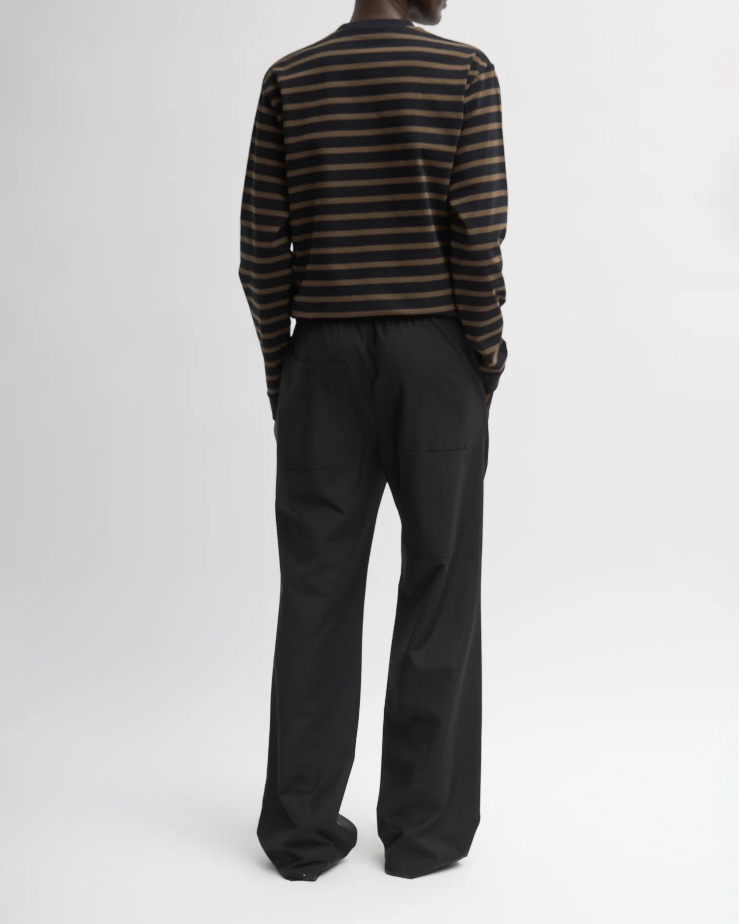 An all-season favorite reimagined in Tibi’s signature Tropical Wool, the Scottie Jogger now features a hidden snap at the hem—allowing you to adjust the length depending on your shoe or setting. Designed with an elastic waistband, drawstrings, and belt loops, it delivers on both comfort and customization. An everyday staple for those who want tailoring—without the tailoring.
