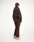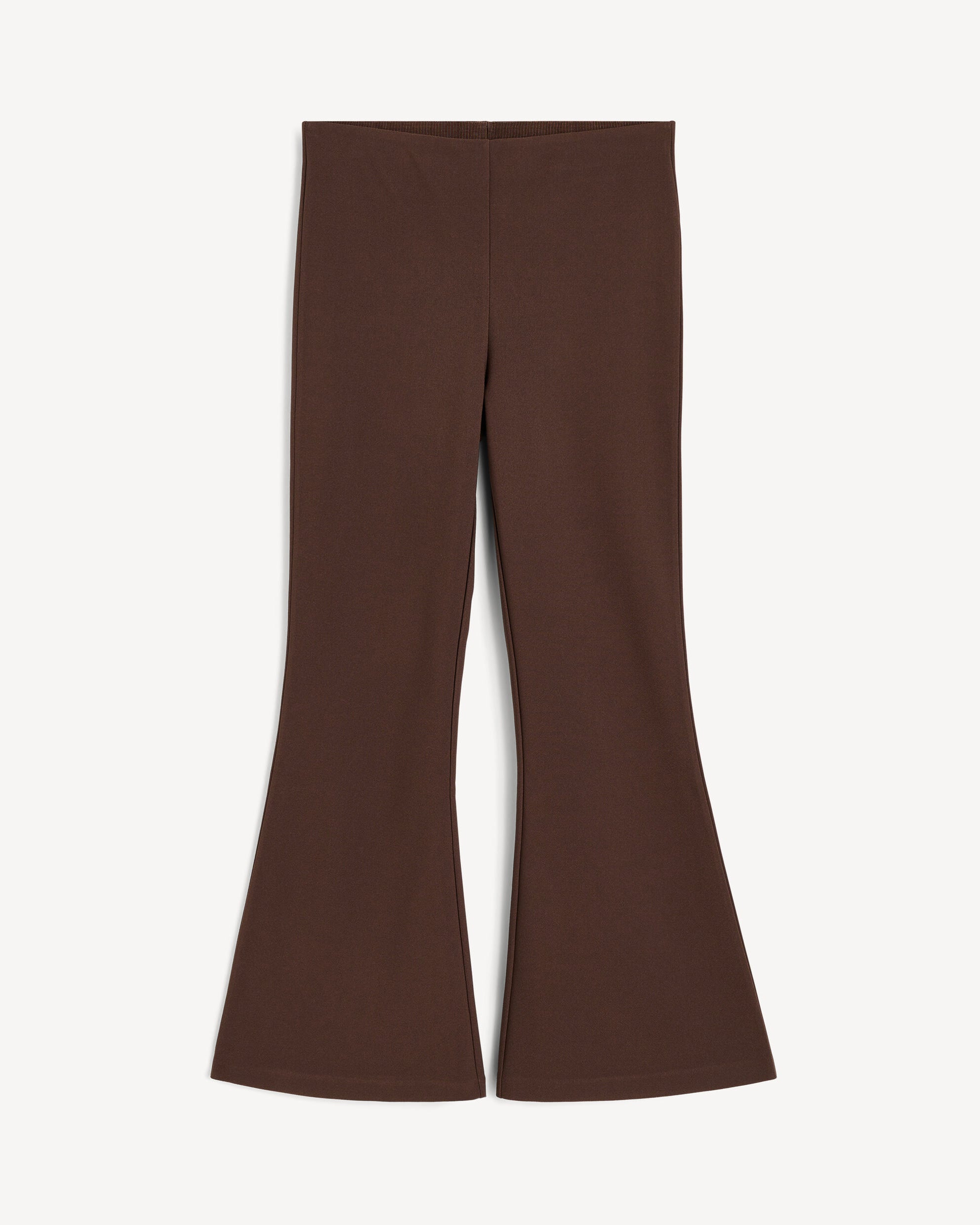 The design has a comfortable mid waist, flared silhouette, and cropped legs. Wear it throughout the week with an oversized blazer and knitwear.