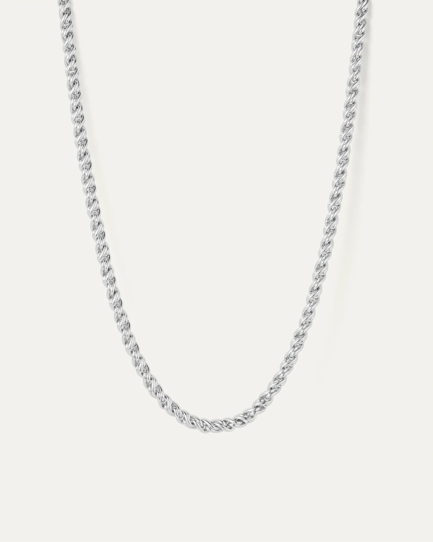 This slinky and slim water-resistant chain overdelivers. The Zeina Chain features a herringbone snake chain that lays flush and comfortably against the skin, reflecting light in an eye-catching way.