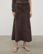 A lofty statement, the Asta skirt is crafted in our signature brushed cashmere with a plush, cloud-like texture. The regular fit, A-line silhouette falls from a comfortable mid waist secured with an elasticated waistband into a flared skirt which crops below the knees.
