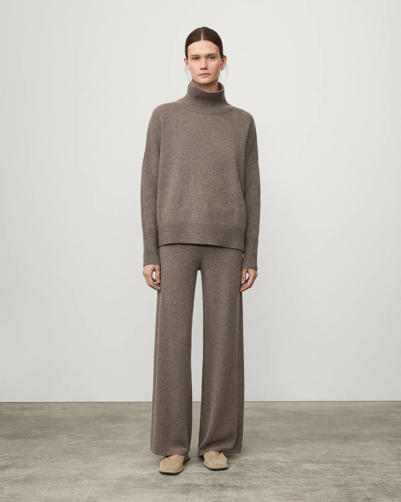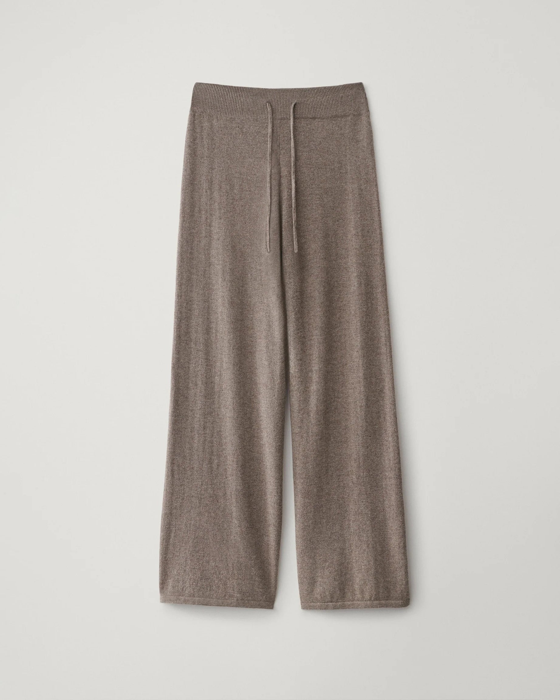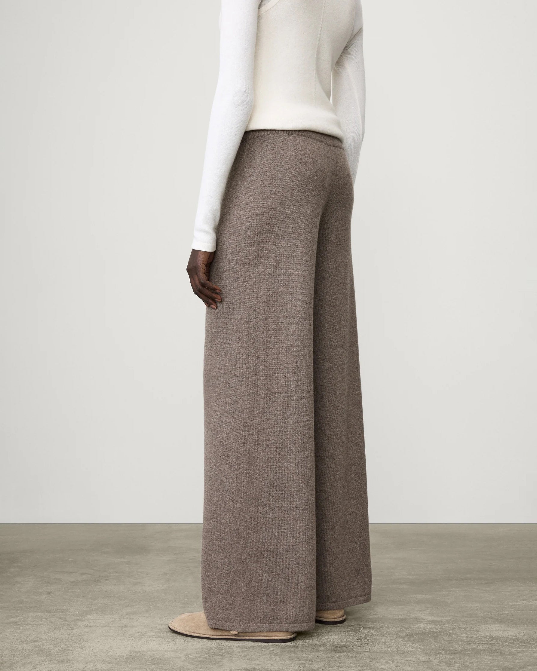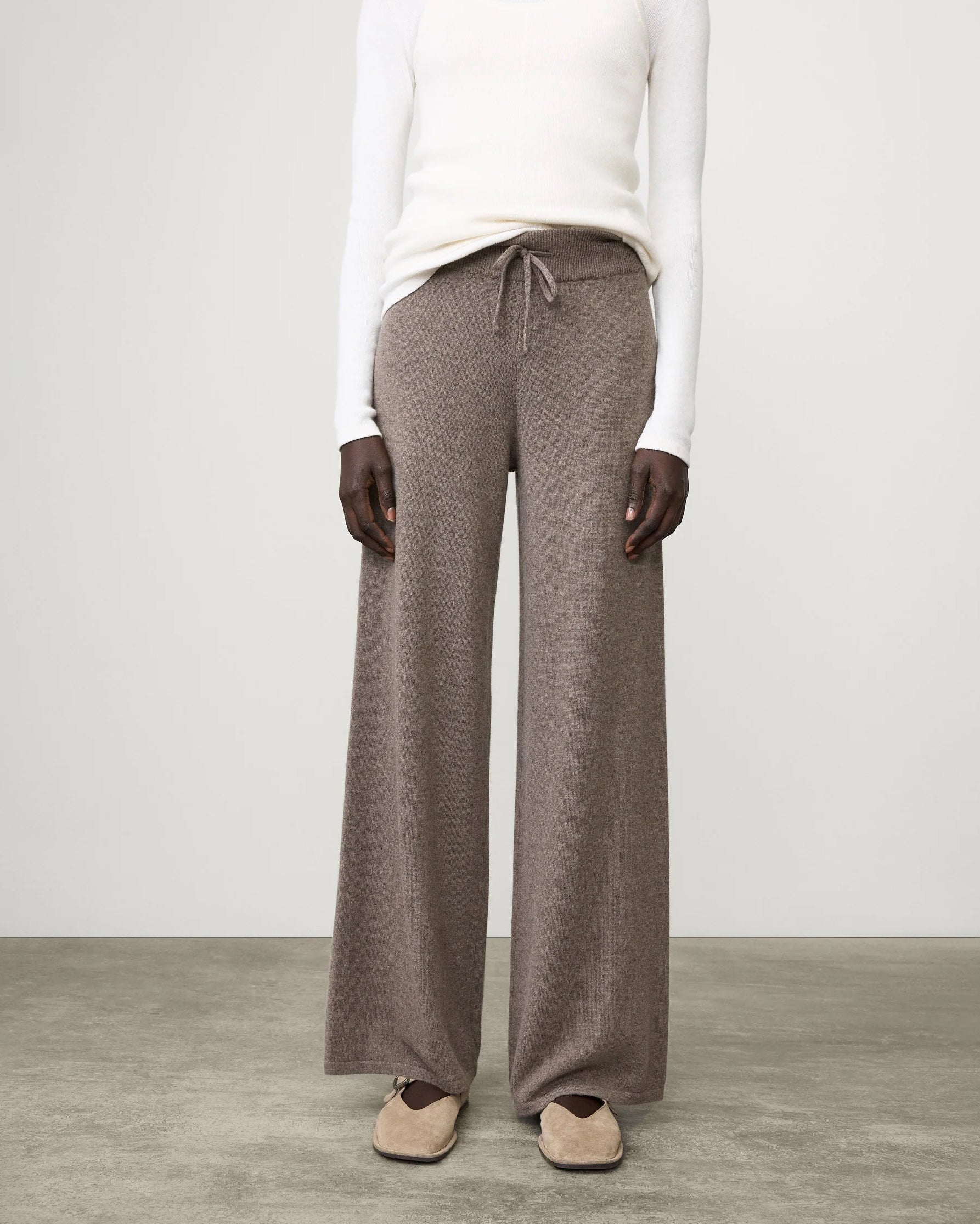An everyday bottom, the Sofi trouser is knitted in soft, mid-weight cashmere for year-round wear. The relaxed silhouette falls from an elasticated mid waist secured with a drawstring into wide, full-length legs which drape along the ankles.