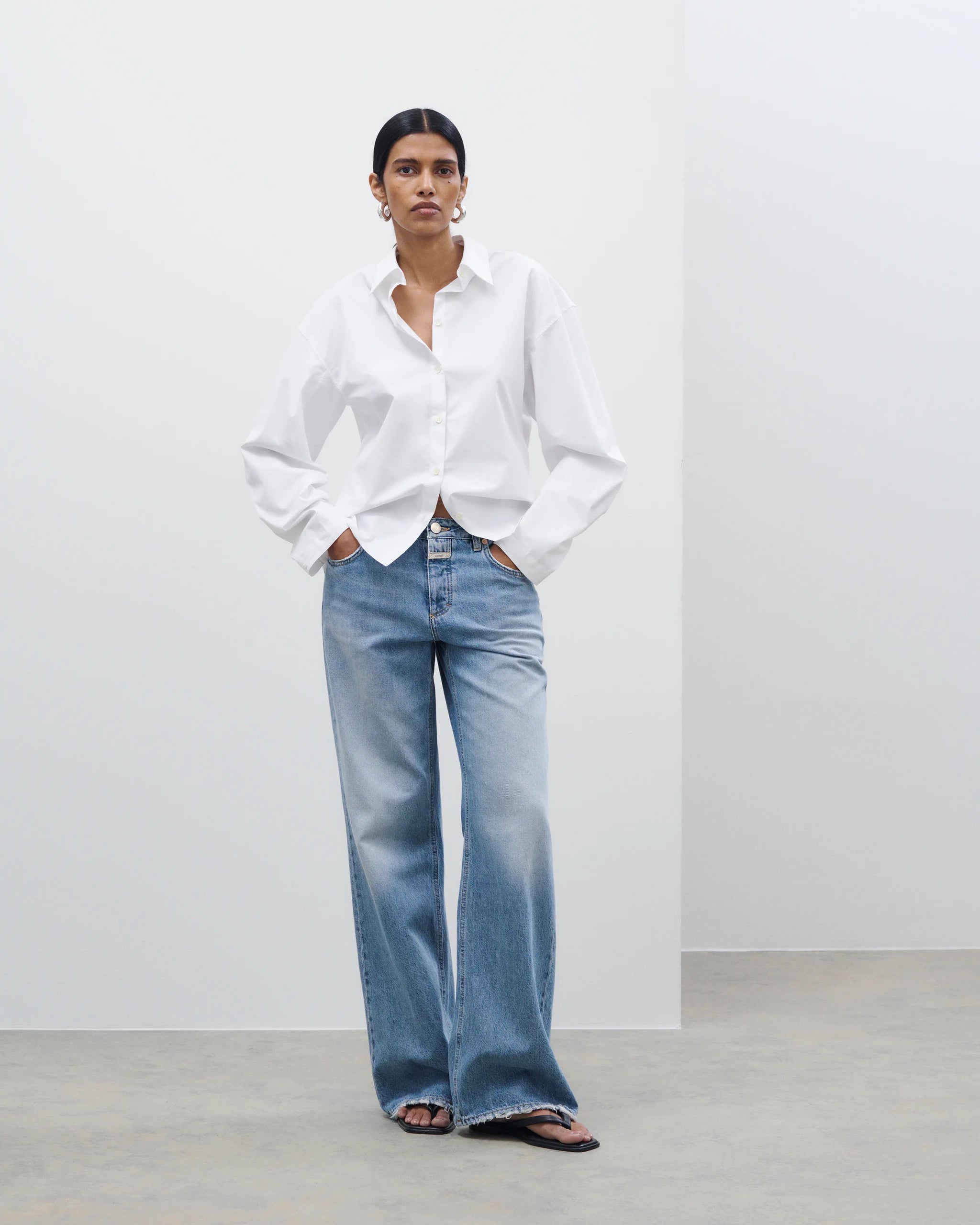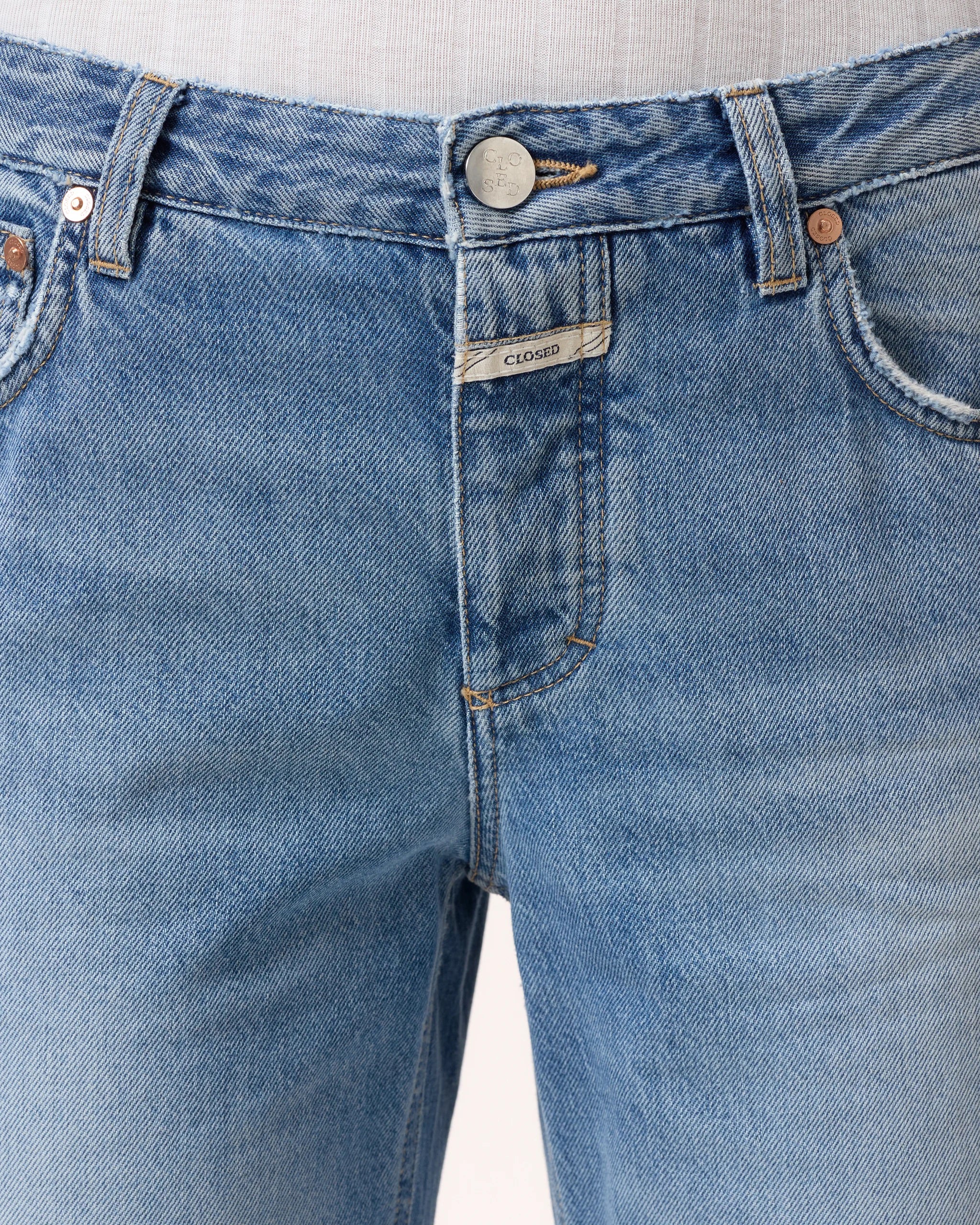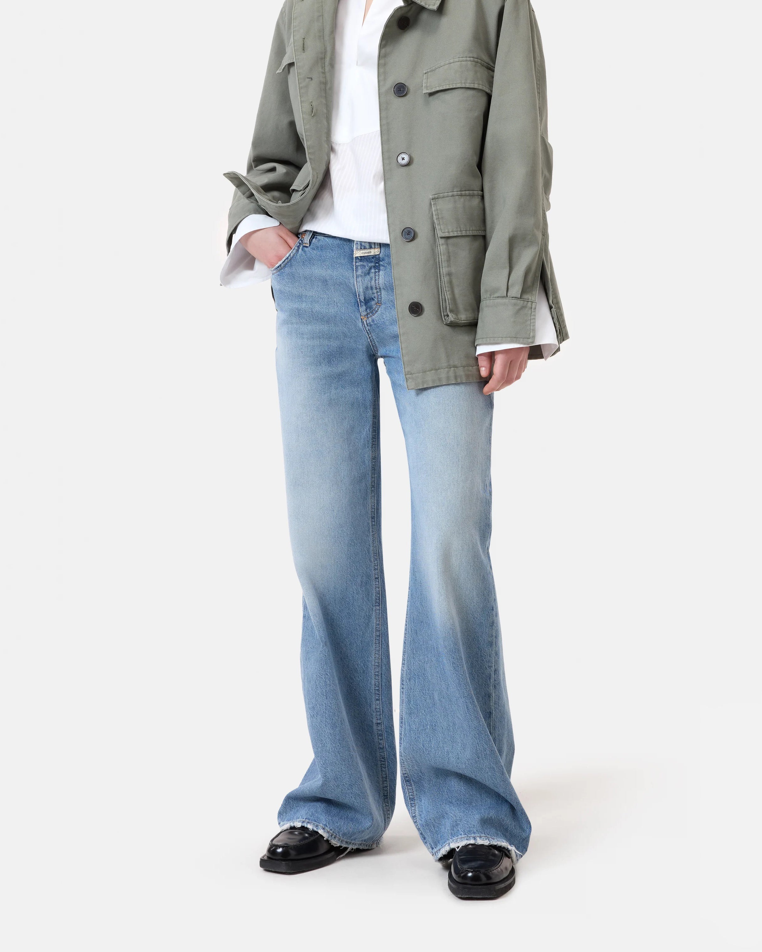 With a light-colored, worn-in wash and slim fit: our jeans with flared legs, button fly, made from strong, authentic denim (12 oz.) with a slight amount of stretch. They also have a low waist and tobacco stitching. Made in Italy by our denim experts