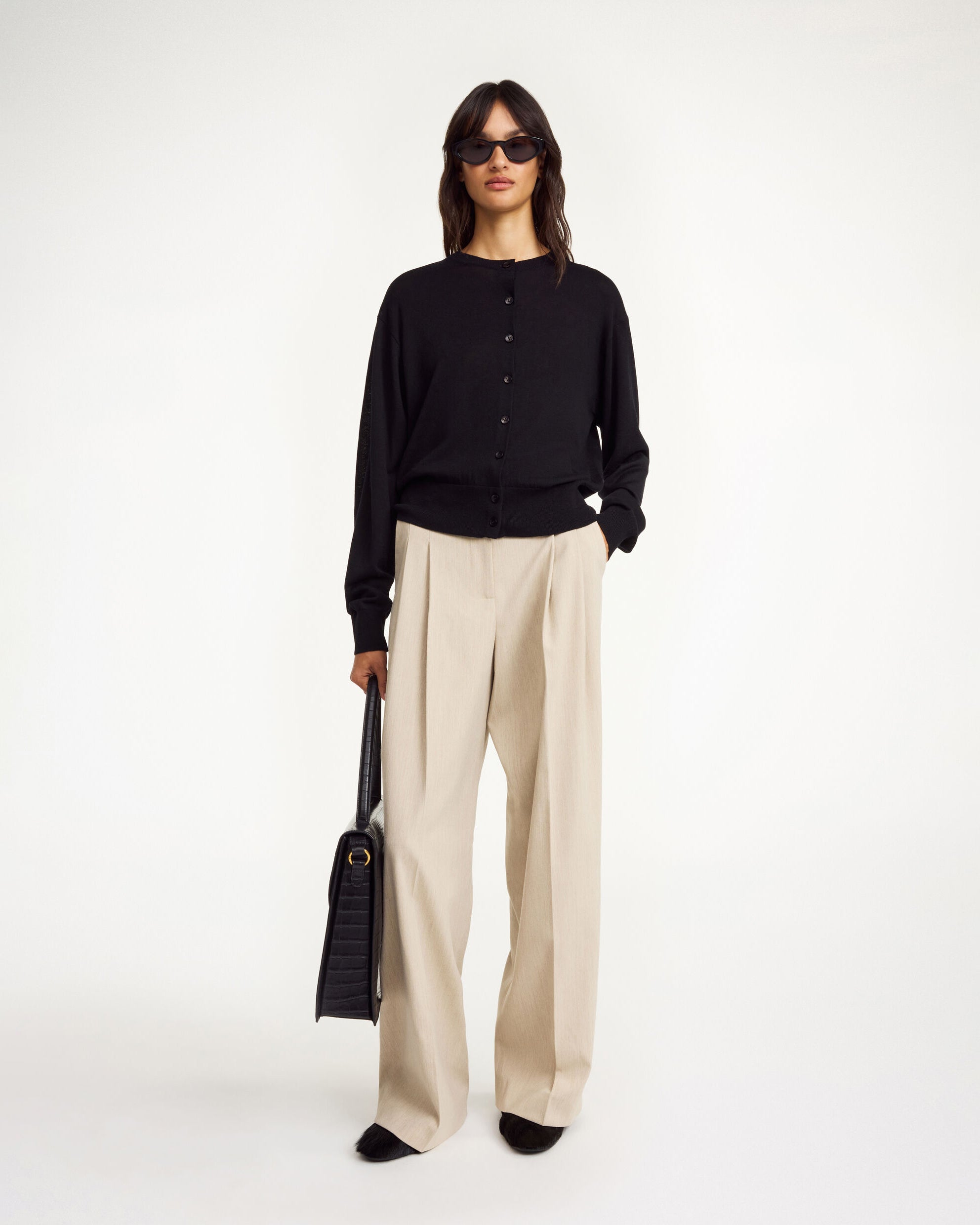 A classic layering piece as the temperature drops, the Montie cardigan features button fastenings down the front, a round neck, and rib trims. The ultra-soft silk and wool blend will instantly make it a favourite. Versatile enough to team with almost everything, you will reach for yours for seasons to come.