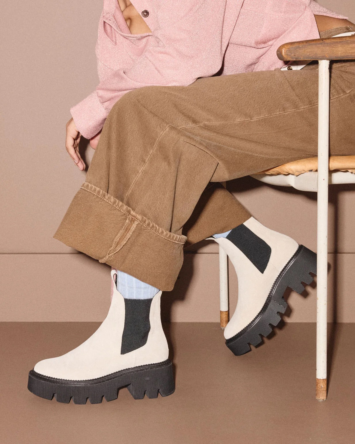 The Chelsea boot reimagined in the details. Handcrafted with water-resistant bone suede, the JORDAN has a statement lightweight lug sole finished with our signature stitched welt. Designed with a wider round toe, we love this boot with chunky socks, your favorite denim and a trench coat.
