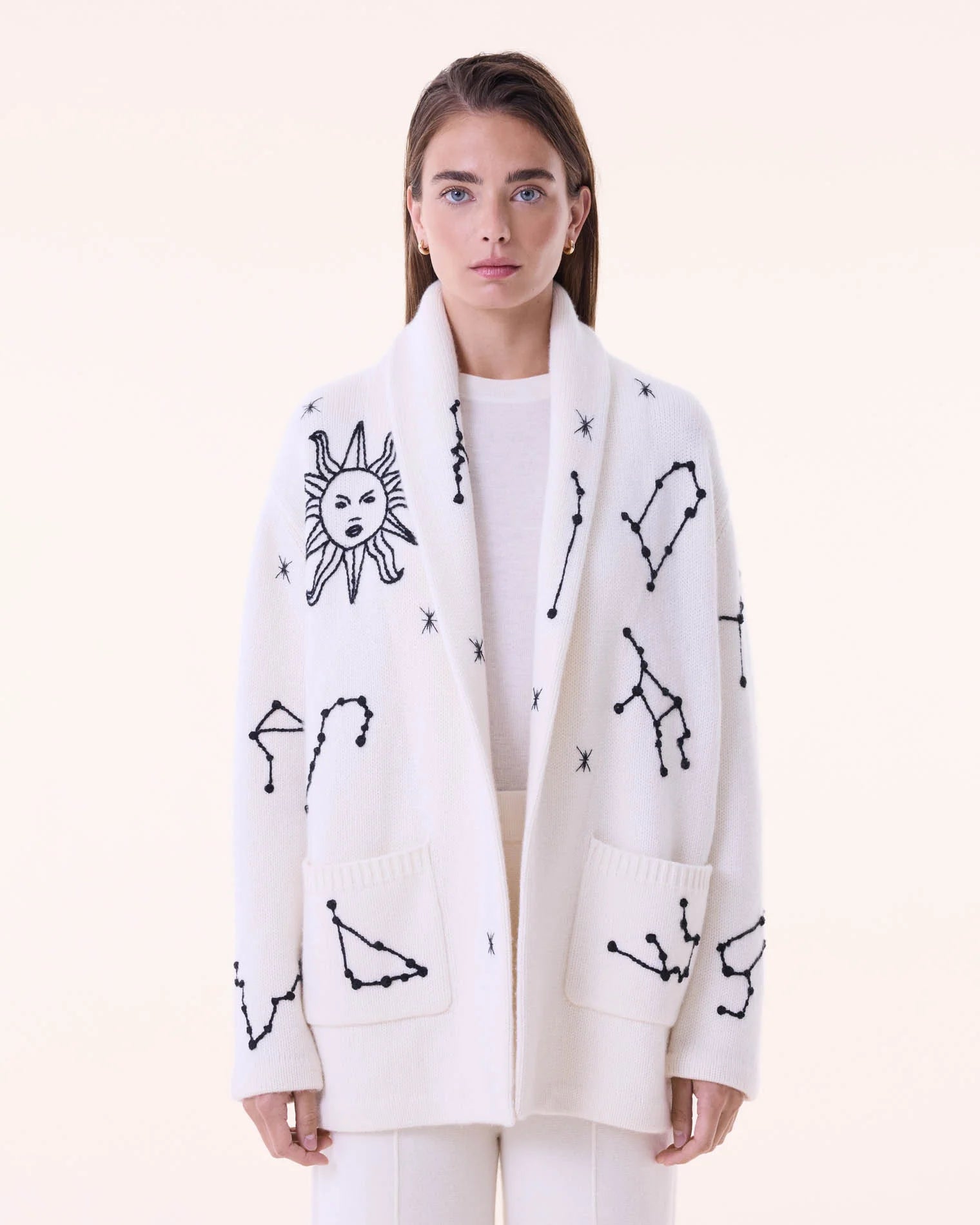 Women's embroidered cashmere cardigan, 6-threads, Kimono collar vest