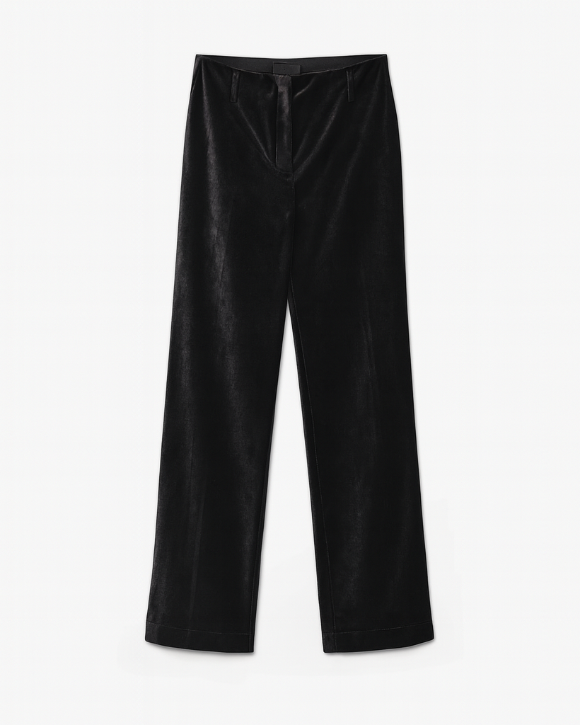 Flared Trousers in Stretch Velvet in Noir