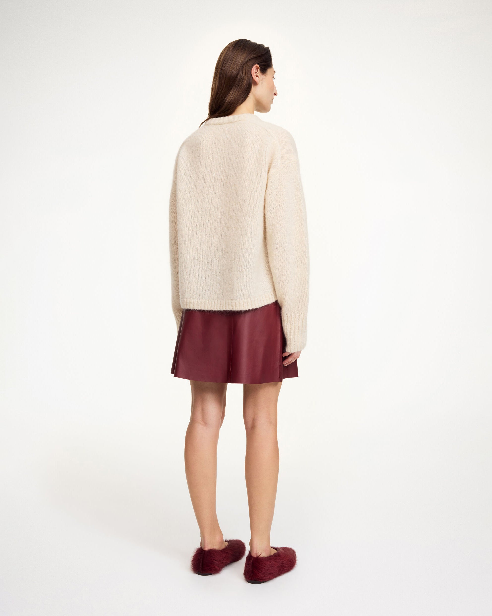 Introduce a touch of edge to your transseasonal edit – courtesy of the Namia skirt. Made in supple leather with a hint of stretch, the minimalist mini design closes discreetly with a zip and hook closure. As the season changes, wear with everything from billowing cotton shirts to voluminous sweaters.