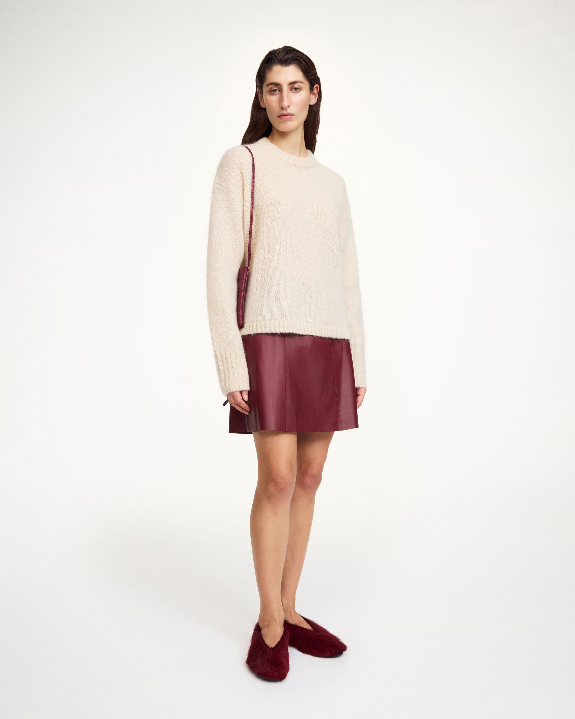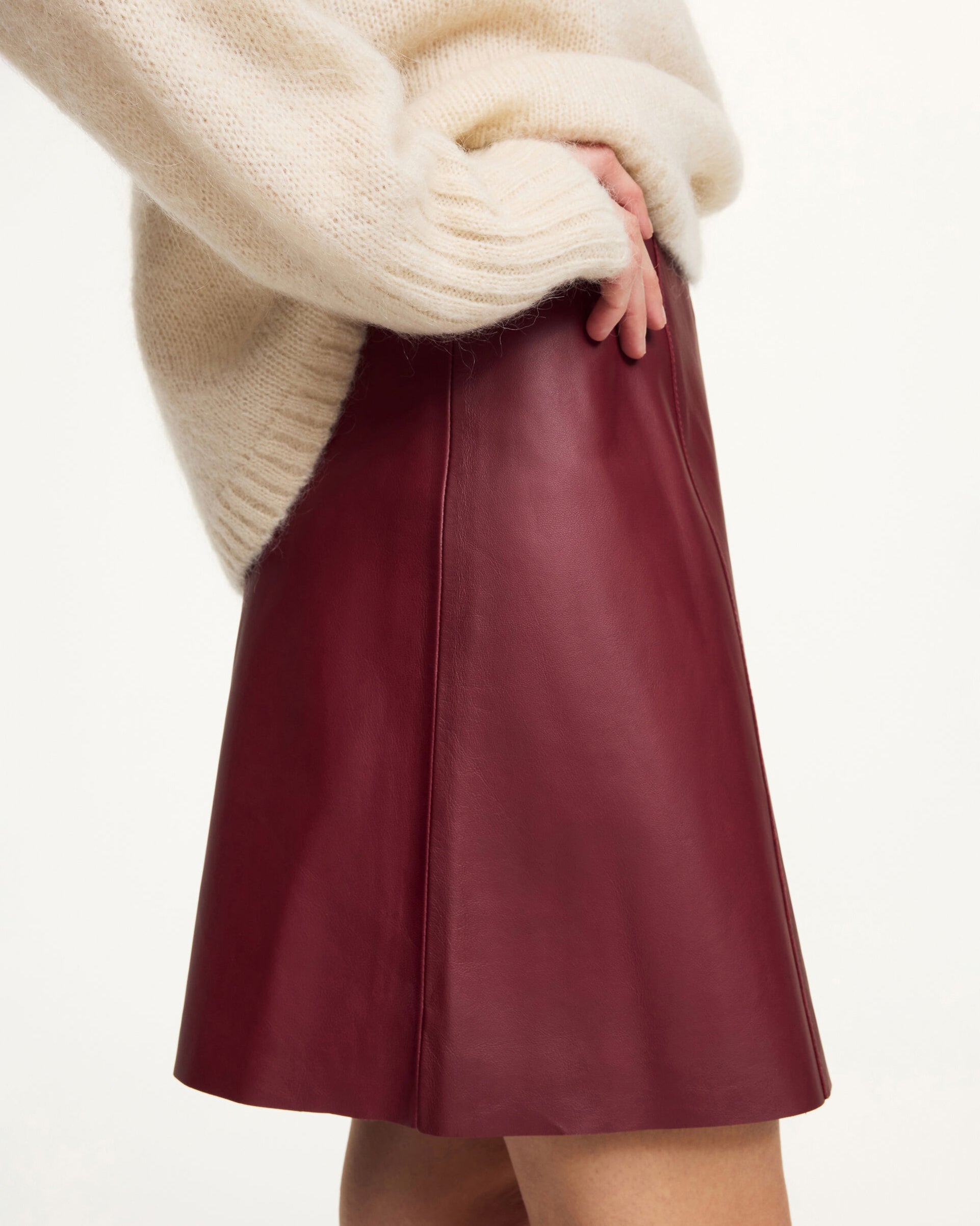 Namia Leather Mini Skirt in Cabernet