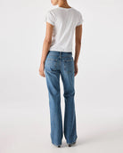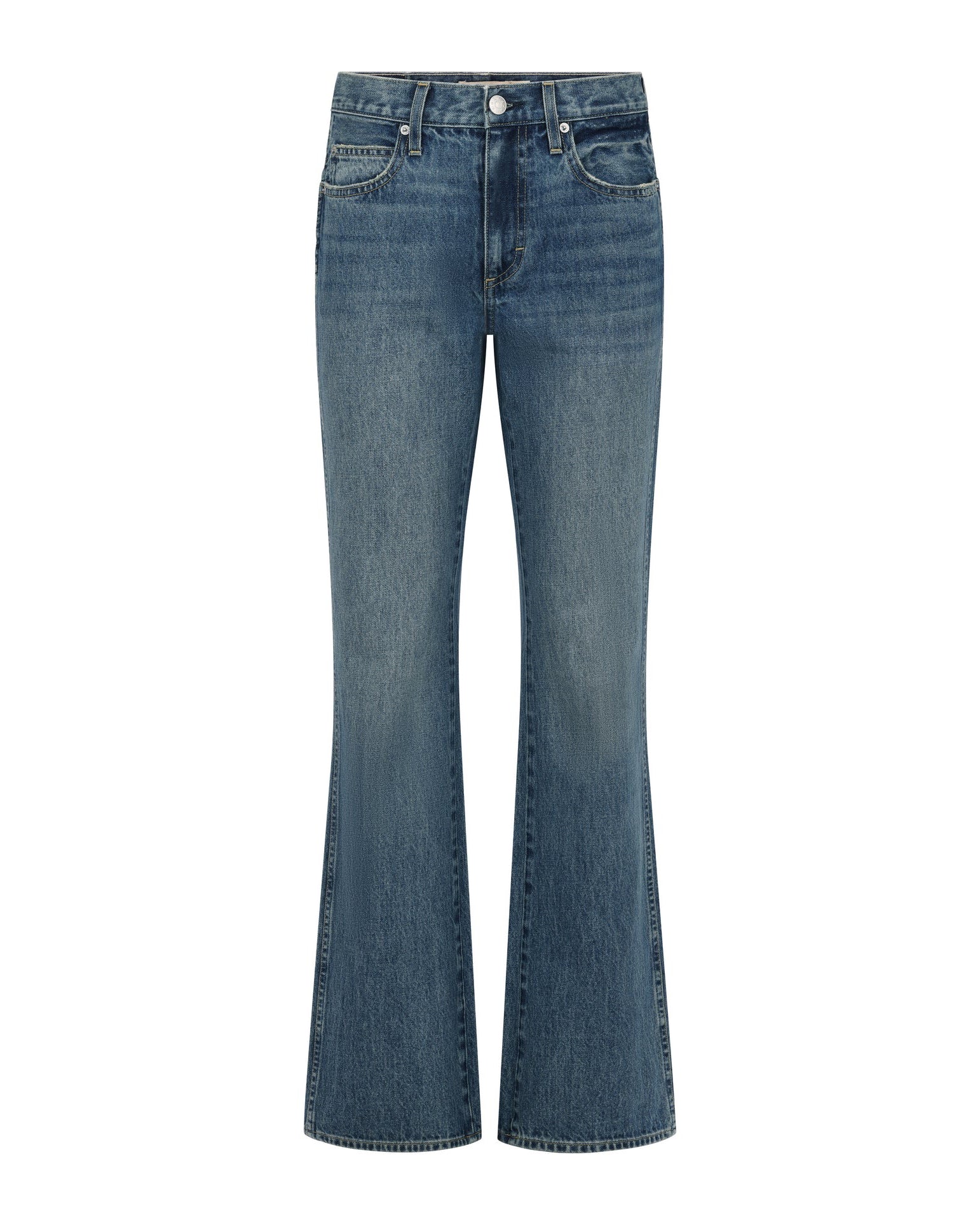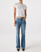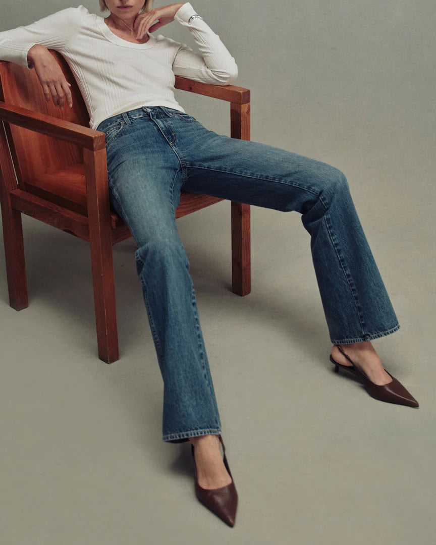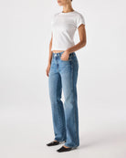A low rise, 90s flashback fit designed to be worn low slung at the hip. Featuring a relaxed rise and a slouchy bootcut leg with a slight amount of stacking at the denim hem. Zip fly.