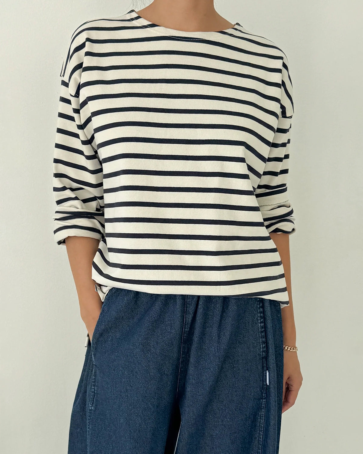 Add a touch of Parisian flair to your wardrobe. With slight updates, the Marseille Top takes inspiration from the timeless Breton stripe uniform, featuring a classic round neckline and an oversized, full-length fit that gently sweeps the hips. Small side slits allow ease of movement while maintaining the top’s effortless shape. Crafted from durable, heavyweight cotton, it offers structure without sacrificing softness, making it an ideal choice for both elevated and casual looks.
