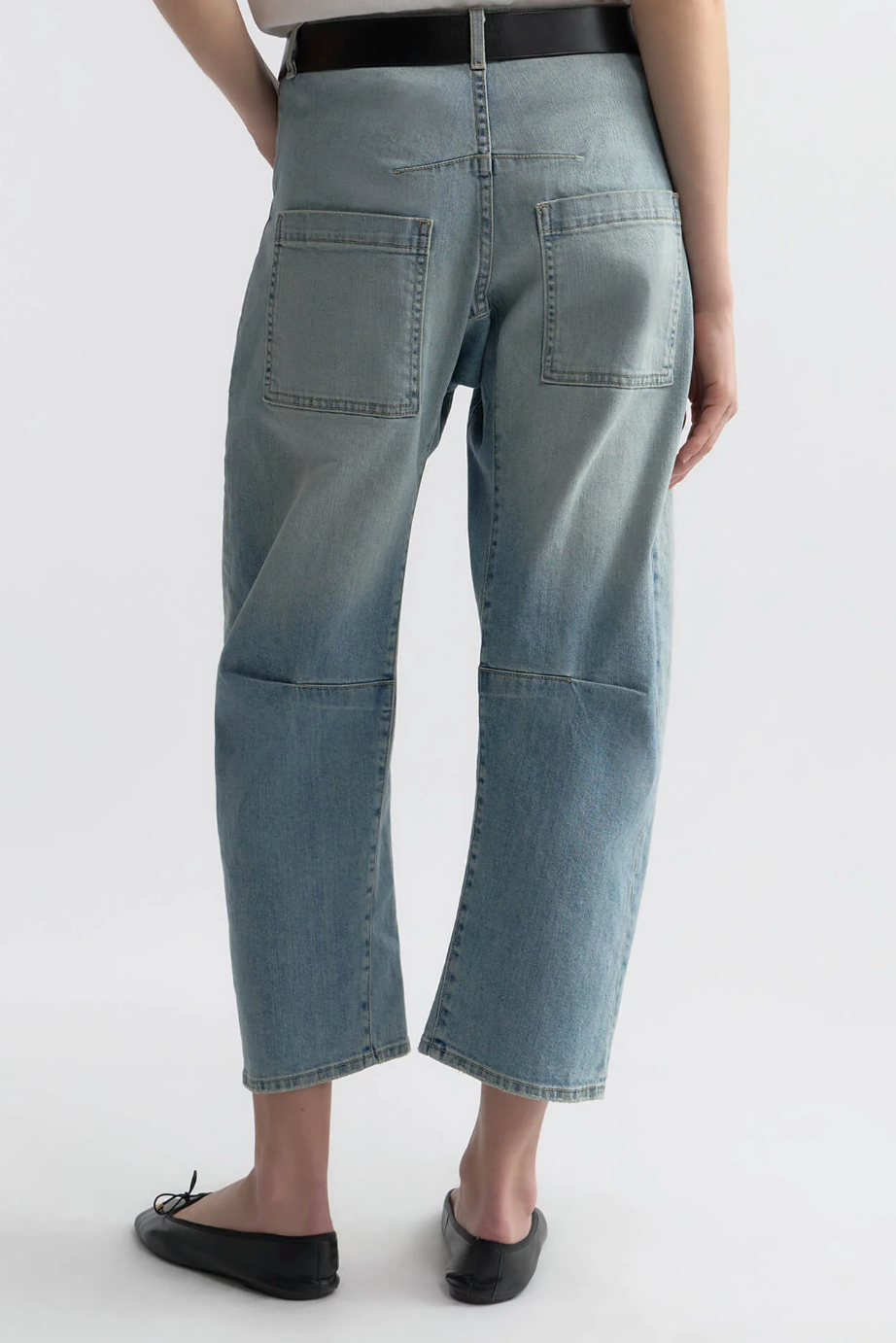 A mid-rise bow-leg jean born from vintage workwear and reimagined in premium Japanese stretch denim. The Shon is cut with relaxed ease through the leg, shaped by a curved inseam and articulated seam detail at the knees—balancing structure with fluidity for a silhouette that is utilitarian, sexy, easy, and transformative.