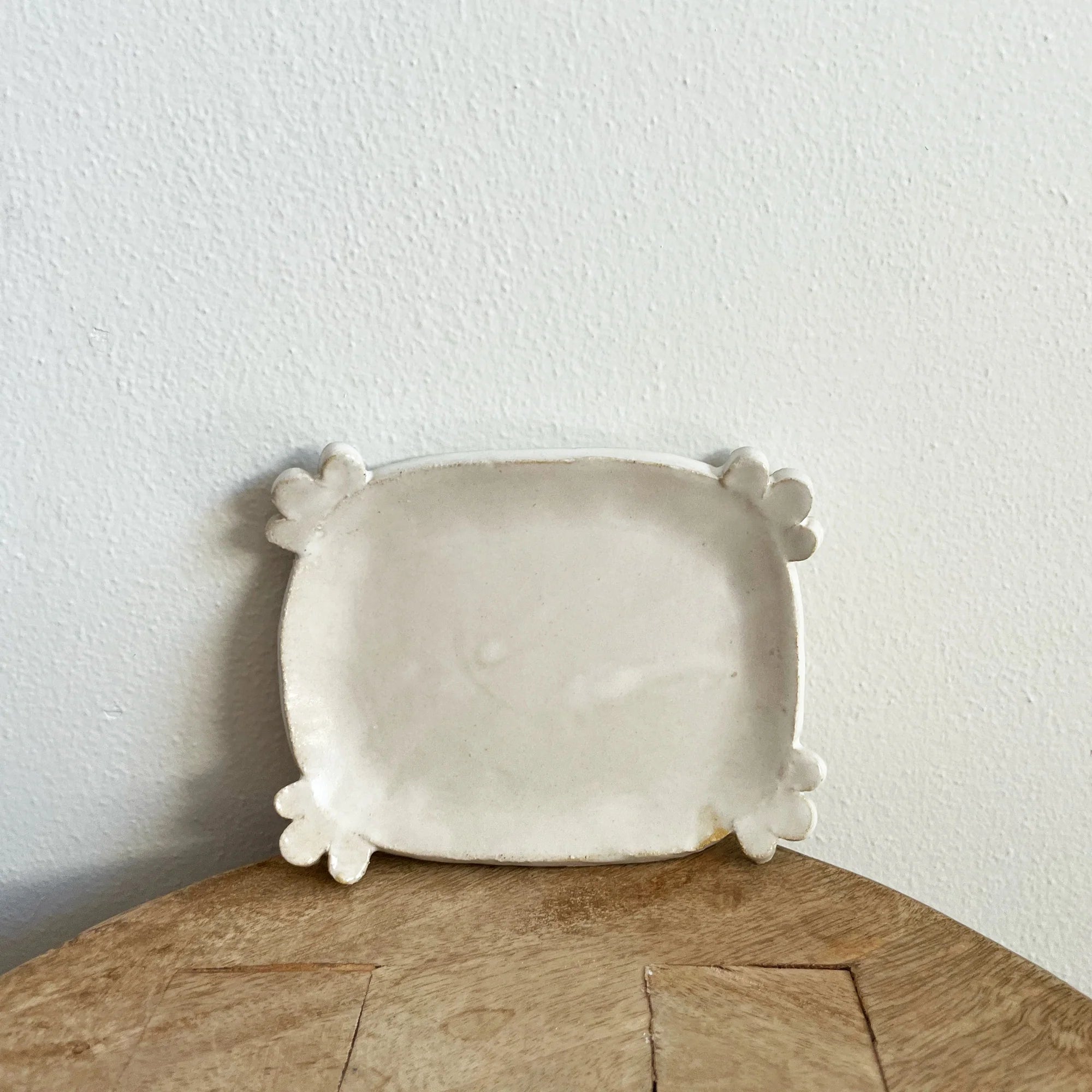 Keep tiny things tidy with this little catchall with fun frills on a bloated rectangle shape.