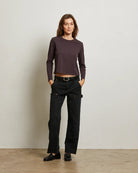 made from soft, breathable supima cotton, this full-length crew is built for year-round wear. with a rounded neckline, true-to-size fit, and a hem that hits right at mid waist, it’s your new not-so-basic basic.