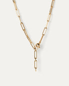 A modern paperclip chain necklace with a crisp silhouette. This design includes non-removable extender rings, making it easy to adjust to your ideal length. Finished in high-polish gold.