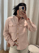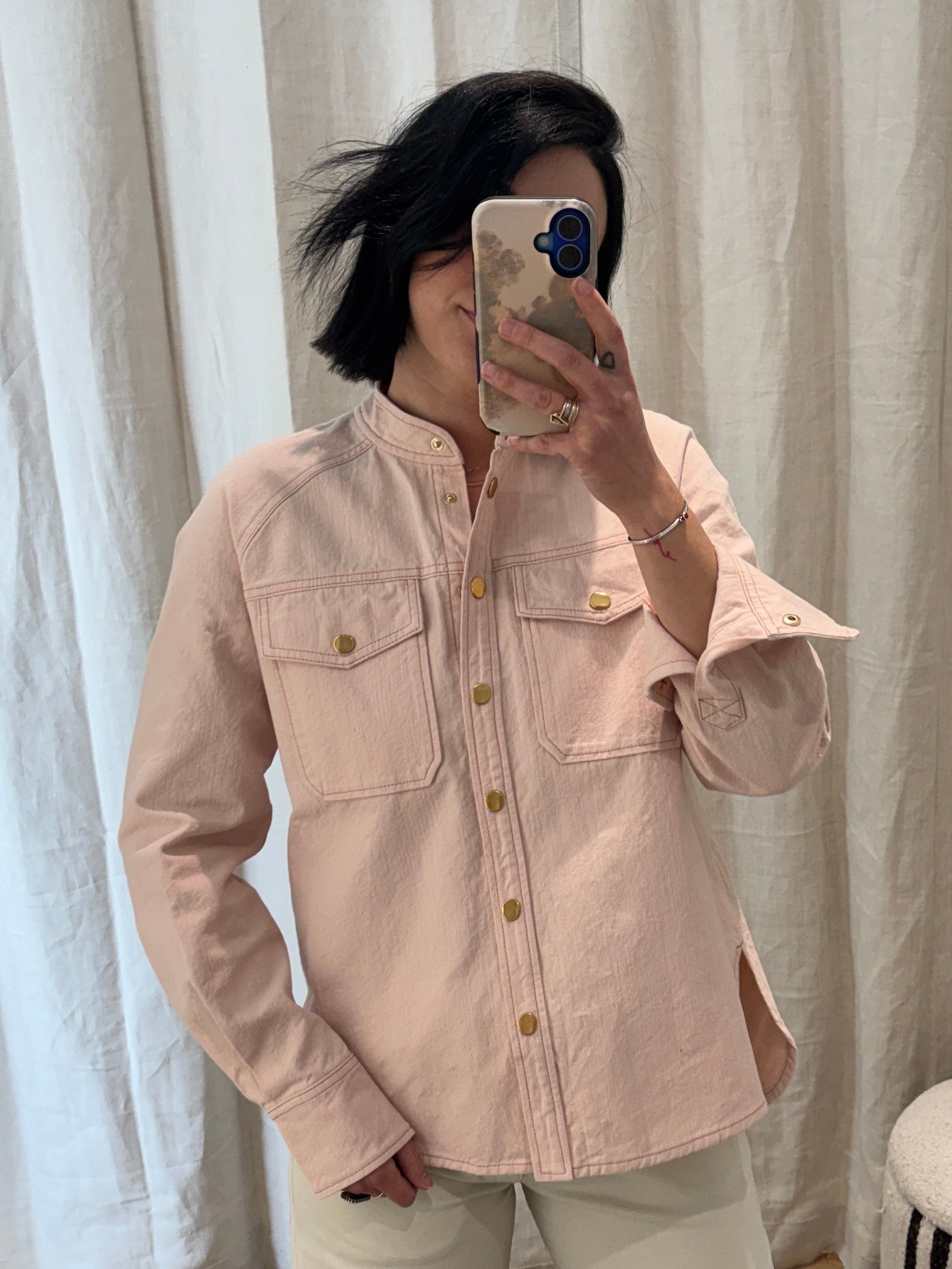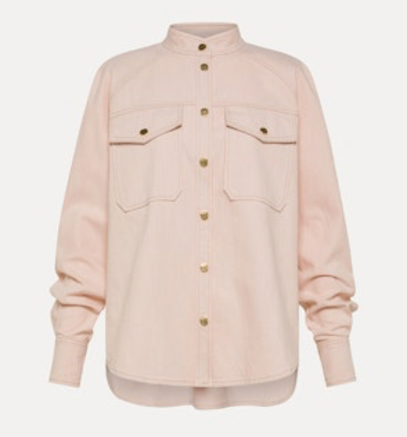 cavalry denim mandarin collar shirt in peonia