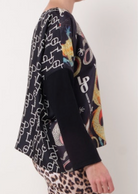 LOOSE BIFACE ROUND COLLAR TOP IN SILK TWILL, VISCOSE JERSEY LONG SLEEVES.