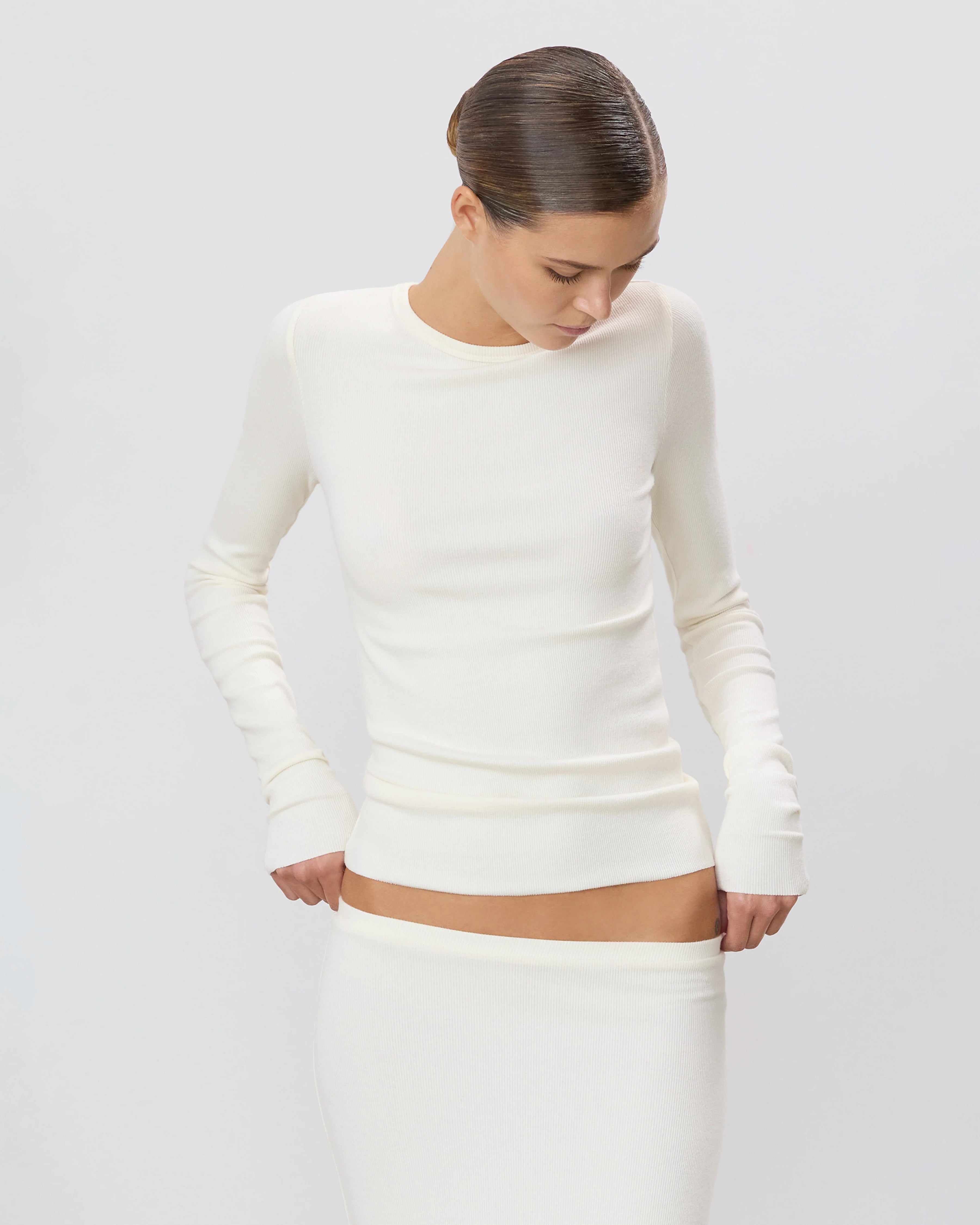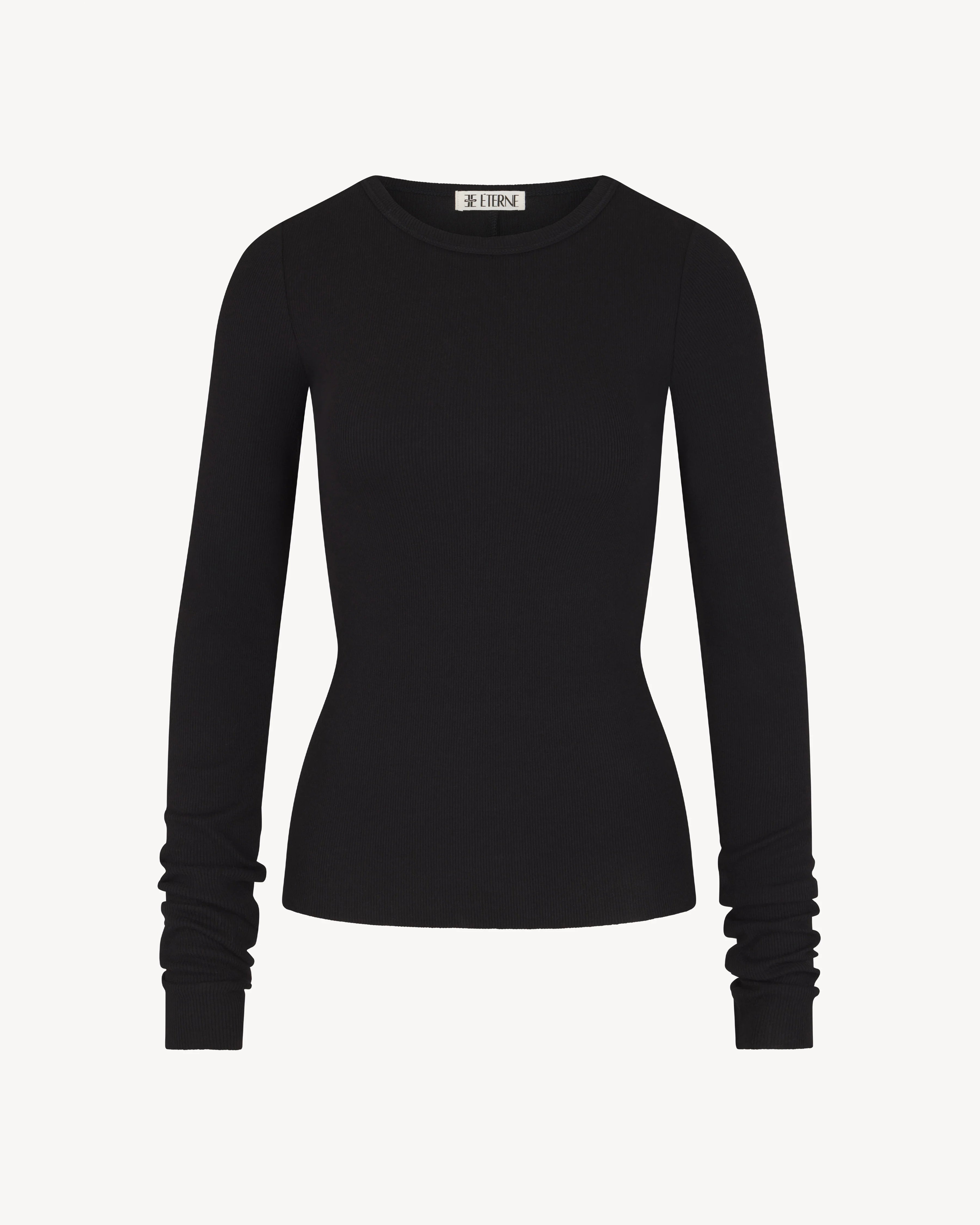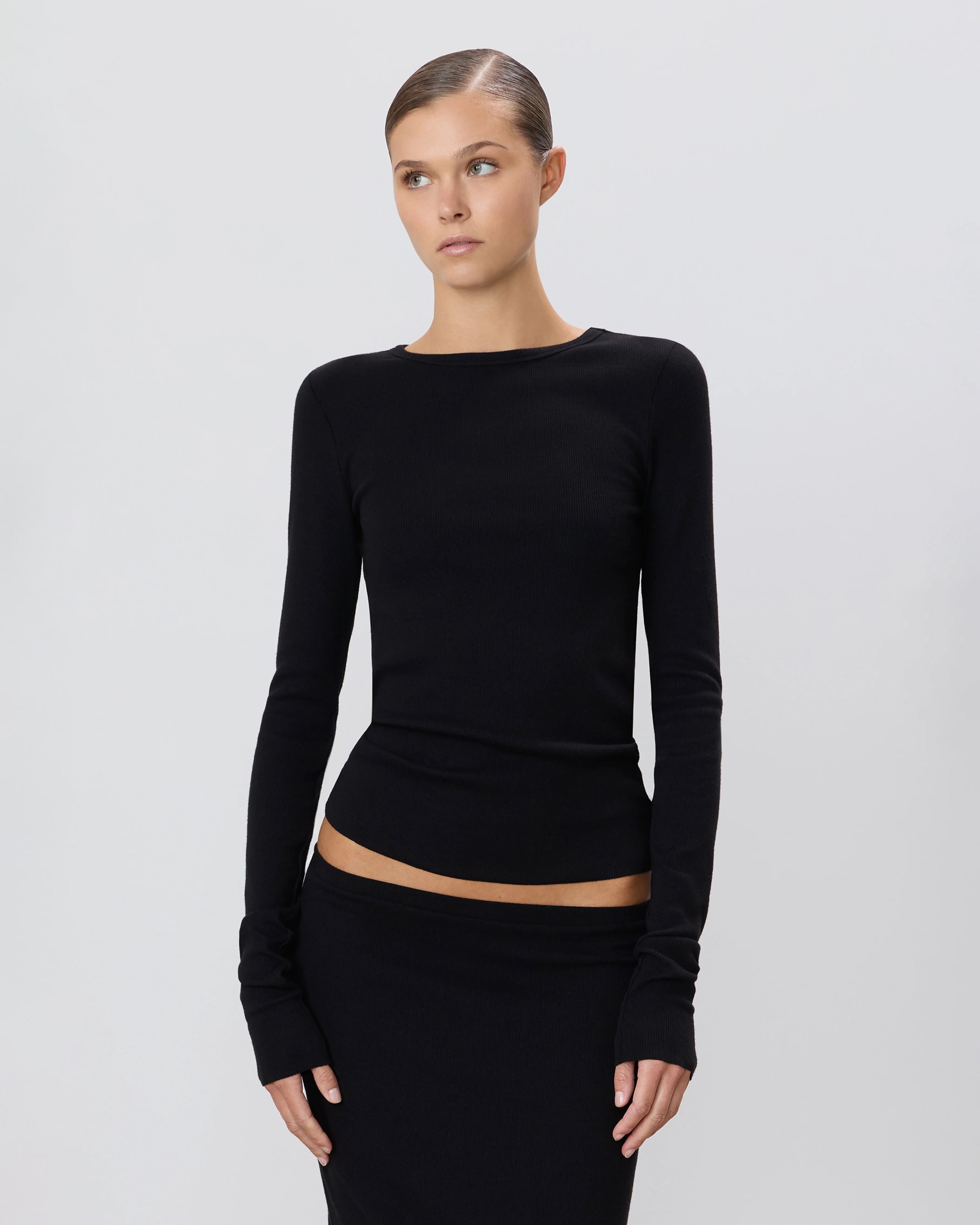 ÉTERNE's Long Sleeve Fitted Top is crafted from butter soft ribbed cotton and modal blend offering a slim fit and a full length - a versatile essential for everyday wear