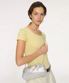 A Mansur Gavriel signature, our sculptural clutch is handcrafted from metallic Italian lambskin leather, featuring an elegantly curved frame with a magnetic closure. Wear it as a clutch, shoulder, crossbody, or belt bag.