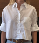 Cropped short-sleeve button-down in fine drop-needle shirting. The Next Ex is a boxy silhouette. Complete with a chest patch pocket, button-up placket, spread collar, and signature double roll button cuffs.
