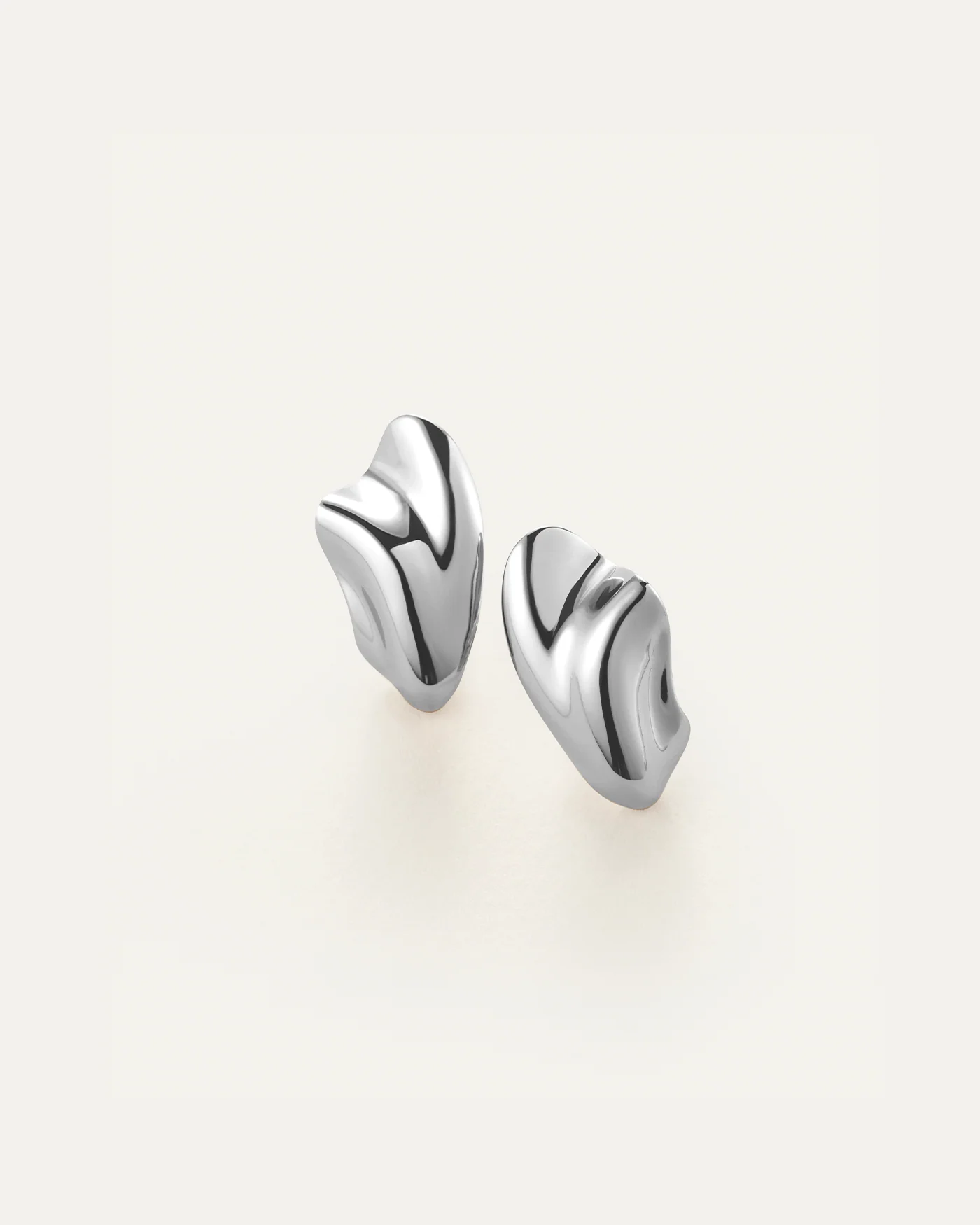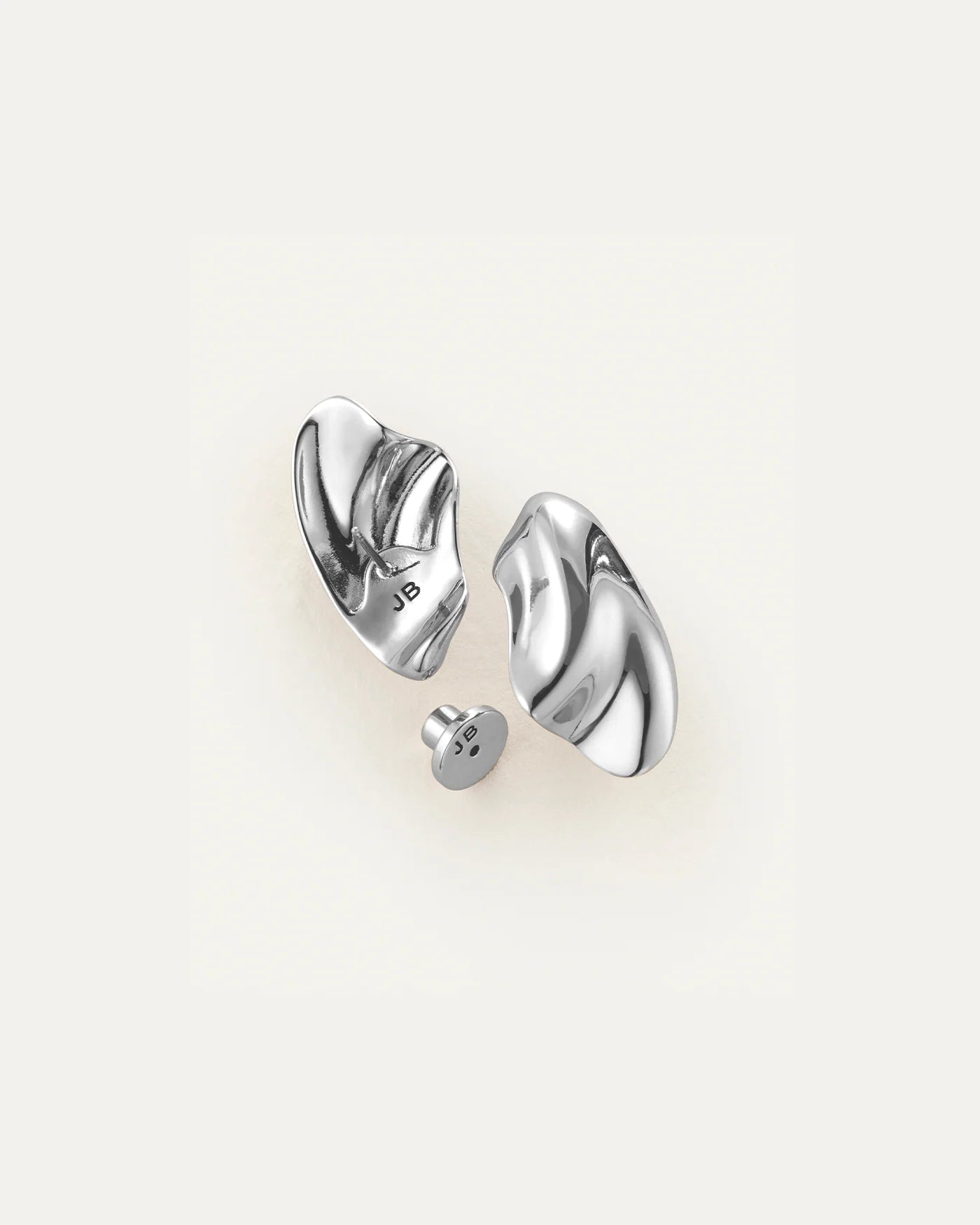 A sculptural mid-sized button earring. Inspired by the organic form of a scalloped seashell, these silver earrings can be worn climbing up the ear or fanning down and out.